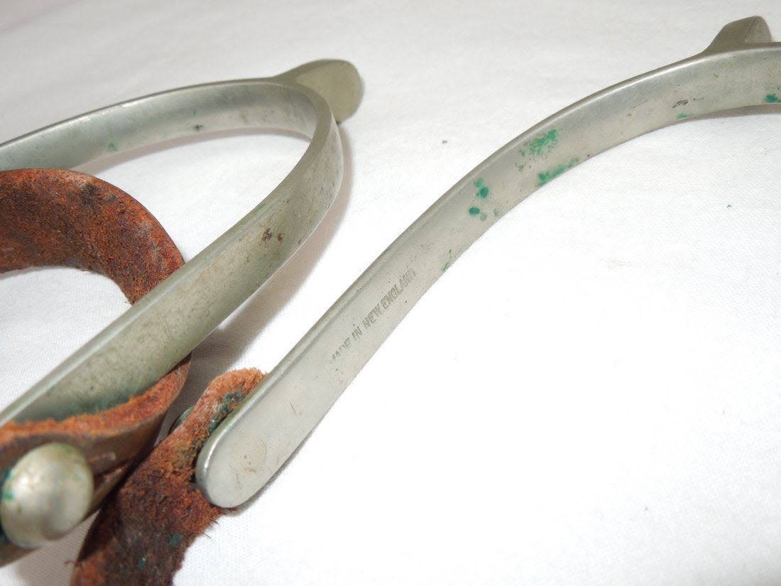 WWI US Cavalry New England Spurs w/ Leather Straps. You will receive the pair of spurs. Marked Made in New England. The spurs are in very good condition. (II A 21)
