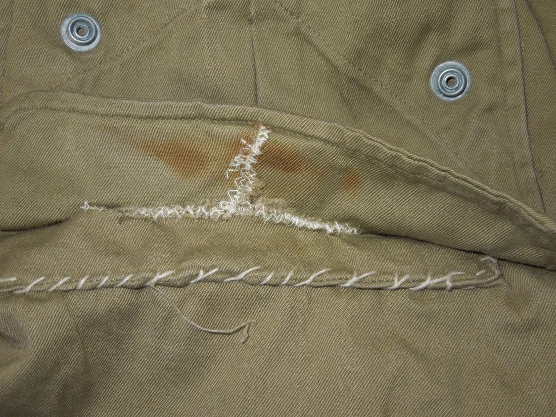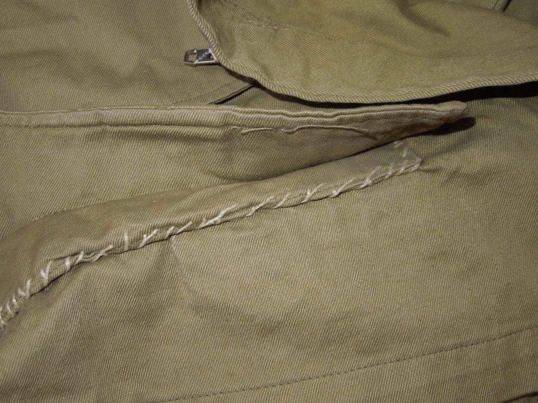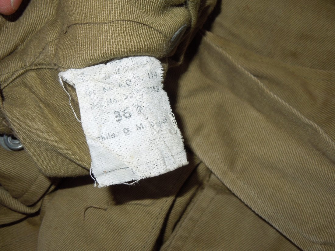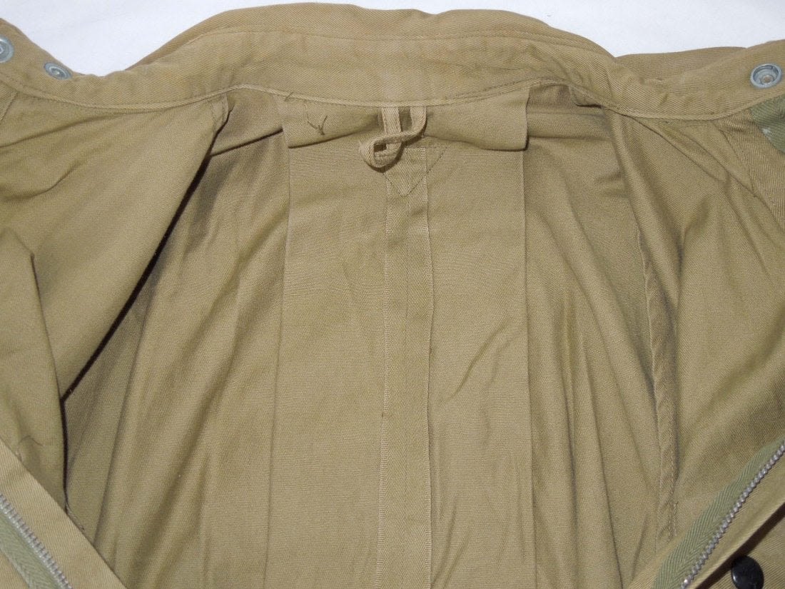 WWII Original M42 jump jacket with sewn on Lieutenant rank and Airborne Command patch. Not named or numbered inside, and the tag is washed out.