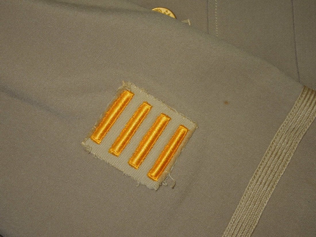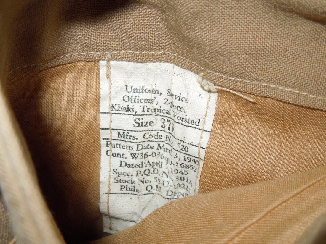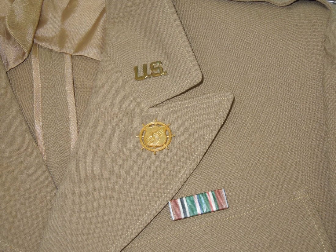 Original WWII size 37 Khaki US Army Lt. Colonel unidentified jacket from a Seventh Army and 34th Infantry Division veteran. Transportation Corps insignia, theater made Seventh Army patch, matched pin back Lieutenant Colonel rank insignia, half inch wide plastic covered European African Middle Eastern Campaign ribbon bar and more.