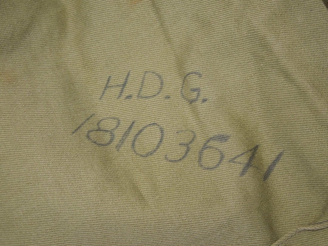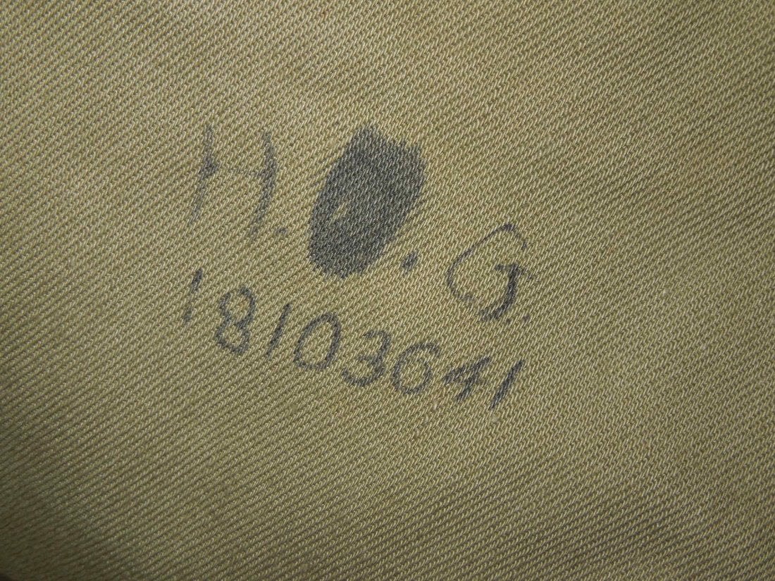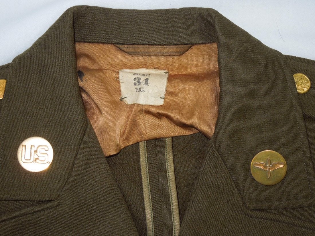 Officer quality jacket to an named 5th AAF Staff Sergeant who earned a Distinguished Flying Cross. This is named to Holsey D. Glover, who became an 8th AAF Bombardier in B-24s over Europe, so it is likely that this was his aviation cadet tunic prior to becoming a bombardier. Good condition. (I C 17)
