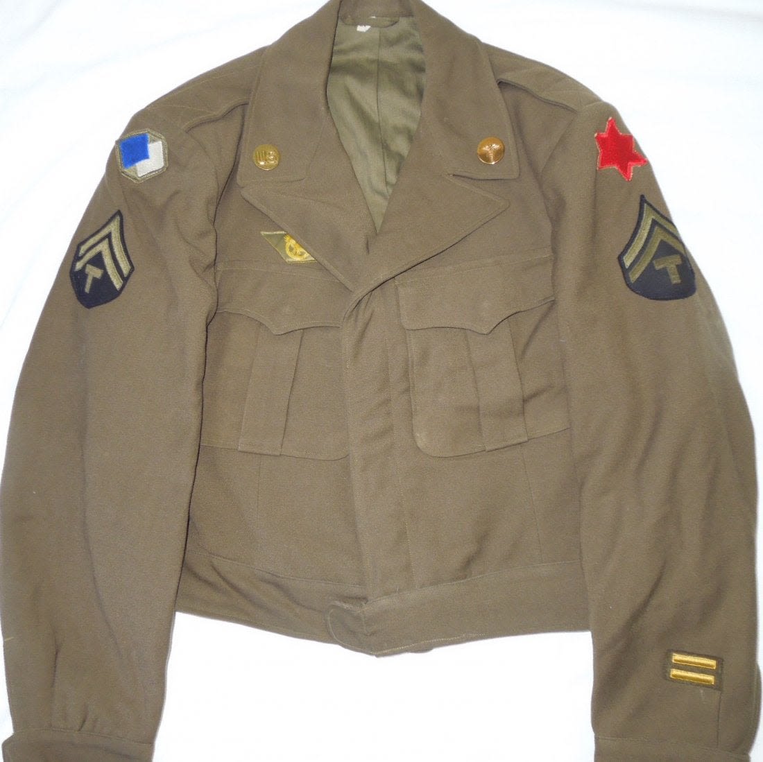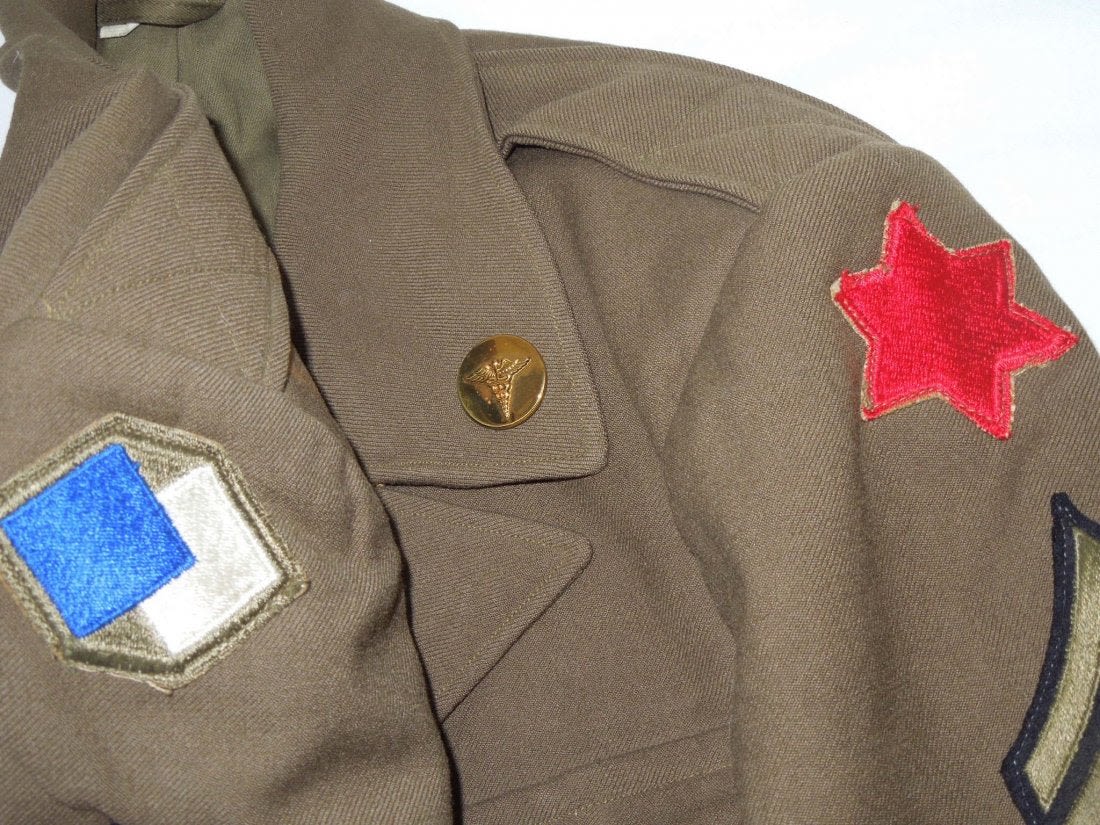 Medical US Army WWII Ike jacket with 96th and 6th Infantry Division patches; Size 38L, good condition. (I B 204)