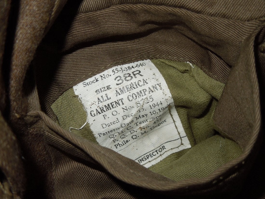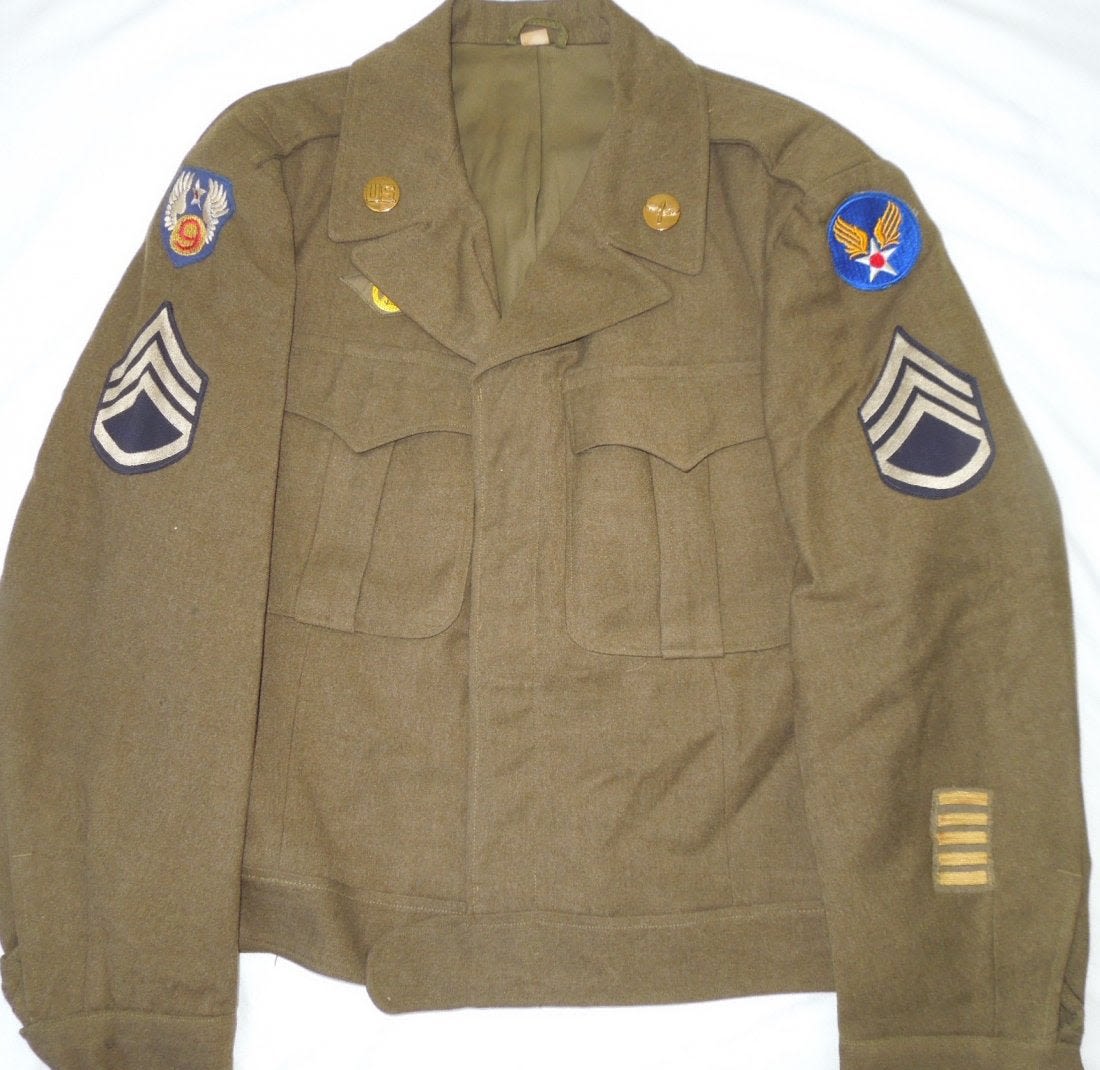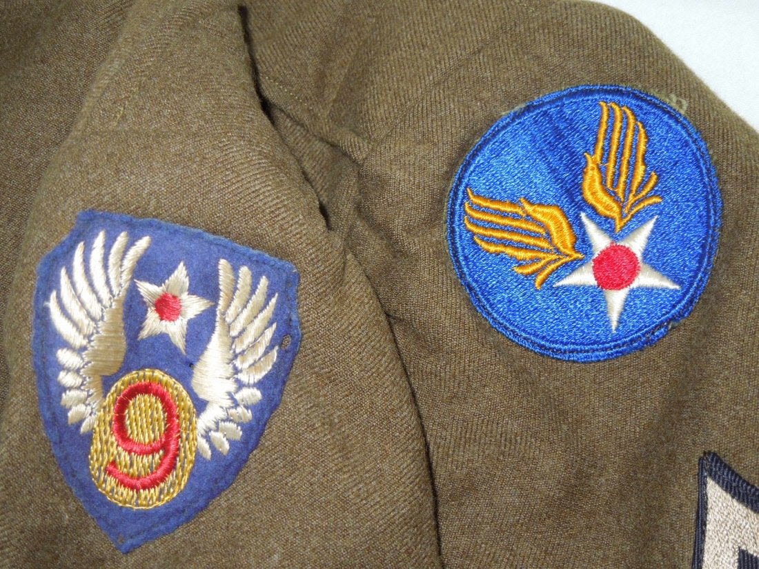 WWII USAAF Ike jacket with a British made 9th AAF patch and British made overseas bars. Good condition. (I C 18)
