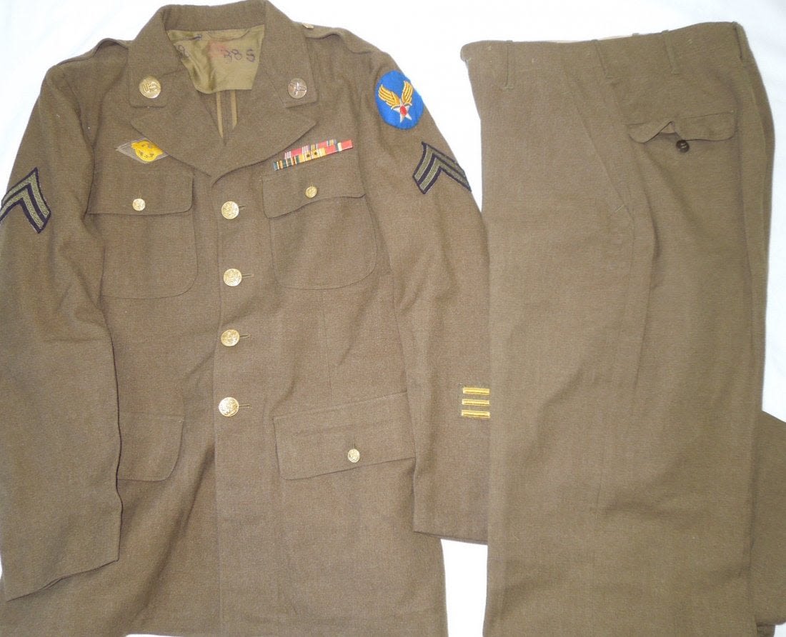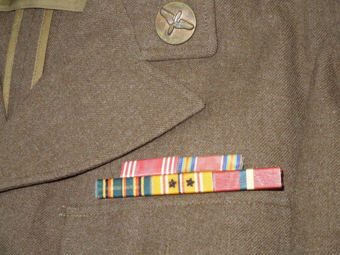 WWII Pacific Theater of Operations Army Air Force uniform with a custom made patch, ribbon bars, and trousers. Good condition. (I C 19)