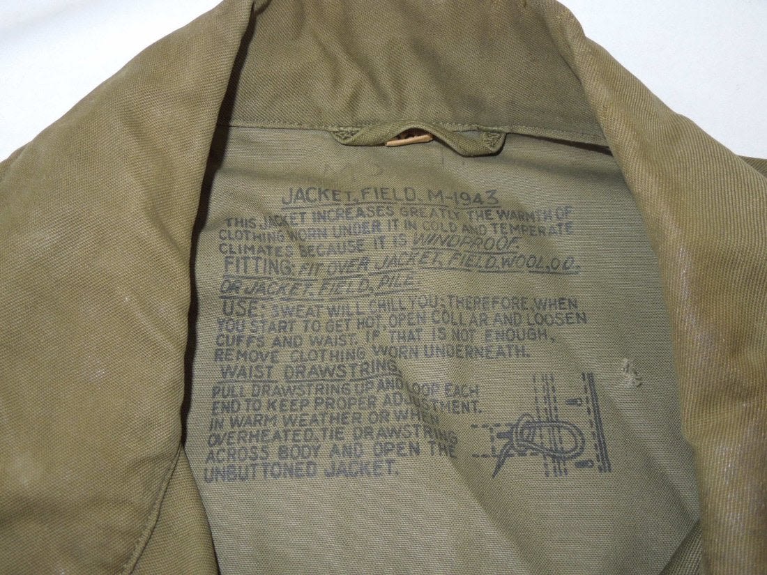 1945 US Military M1943 Size 36L Field Jacket