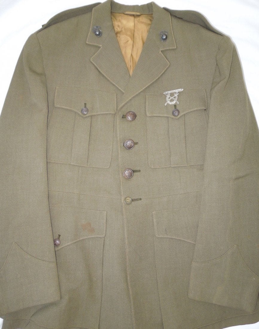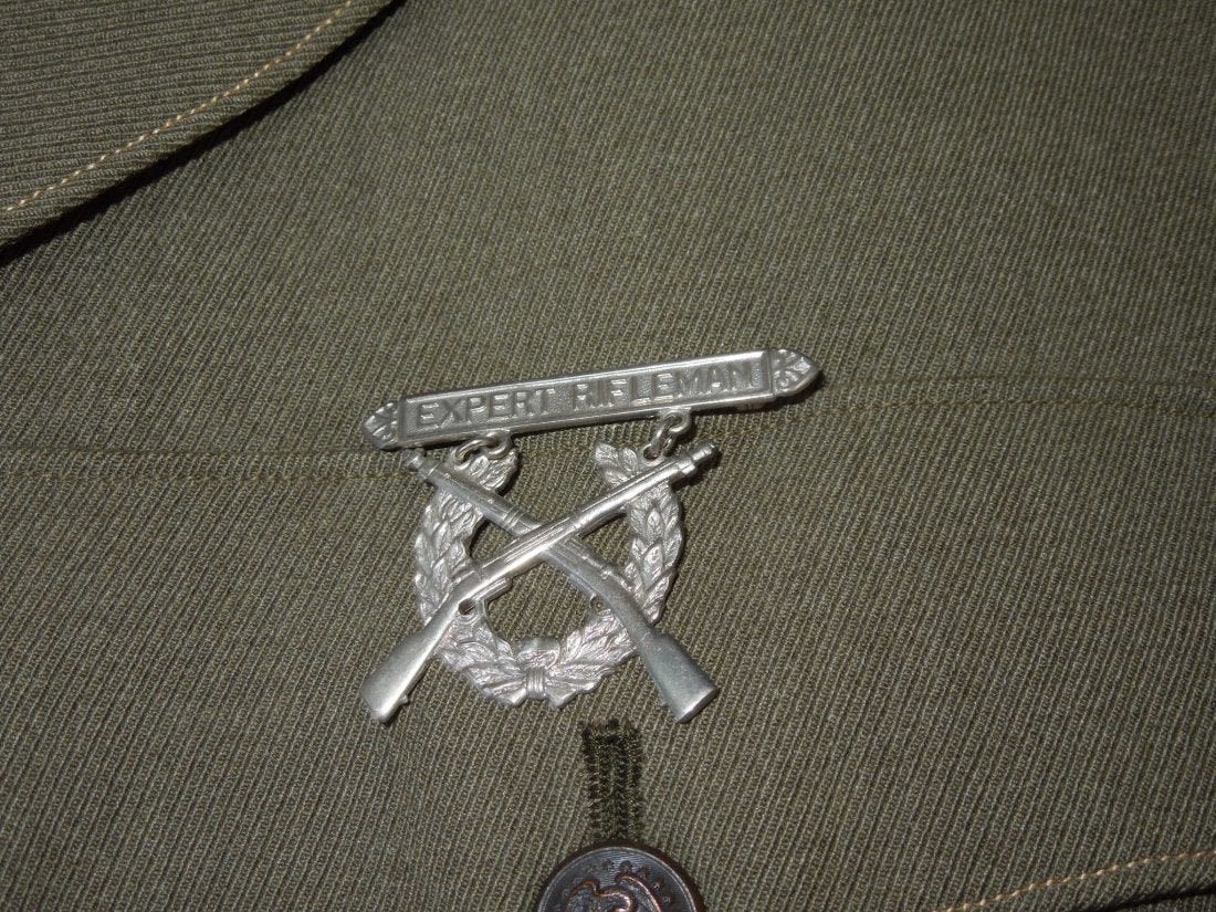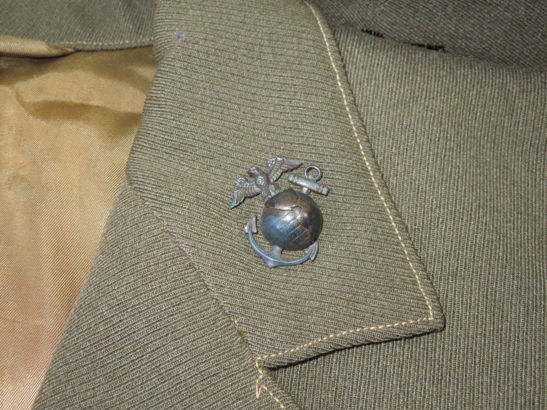 Named USMC Marine Corps uniform jacket to Captain Robert M. Krememtz whose muster rolls show was at the Battle of Iwo Jima with Special Weapons, V Amphibious Corps. Clutch back Captain rank, Officer EGAs, and a pinback marksmanship badge. (I D 5)