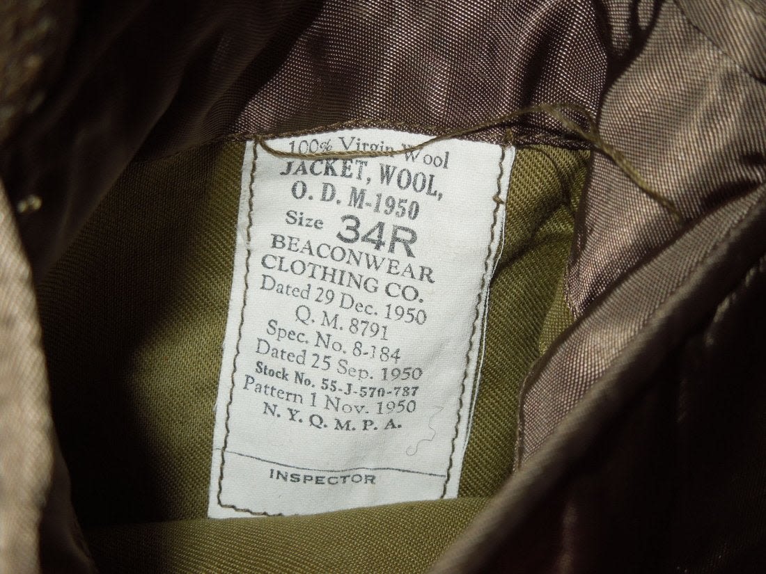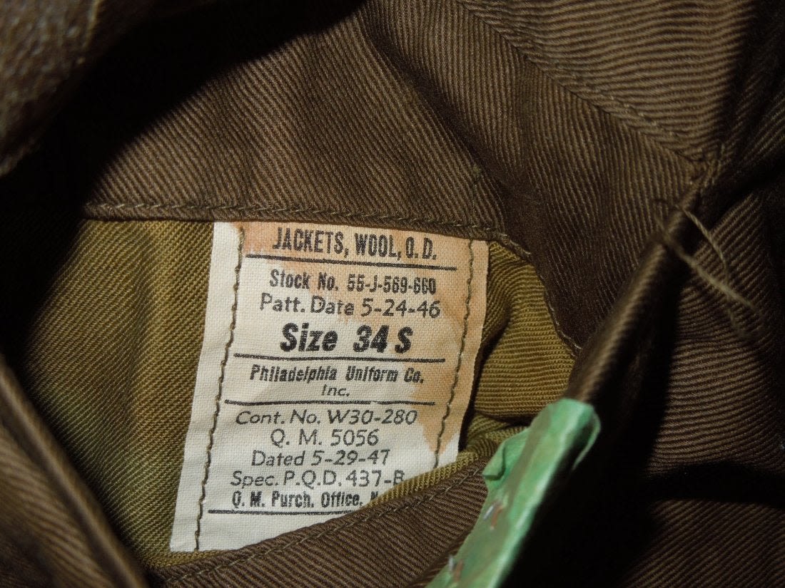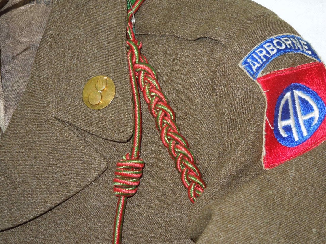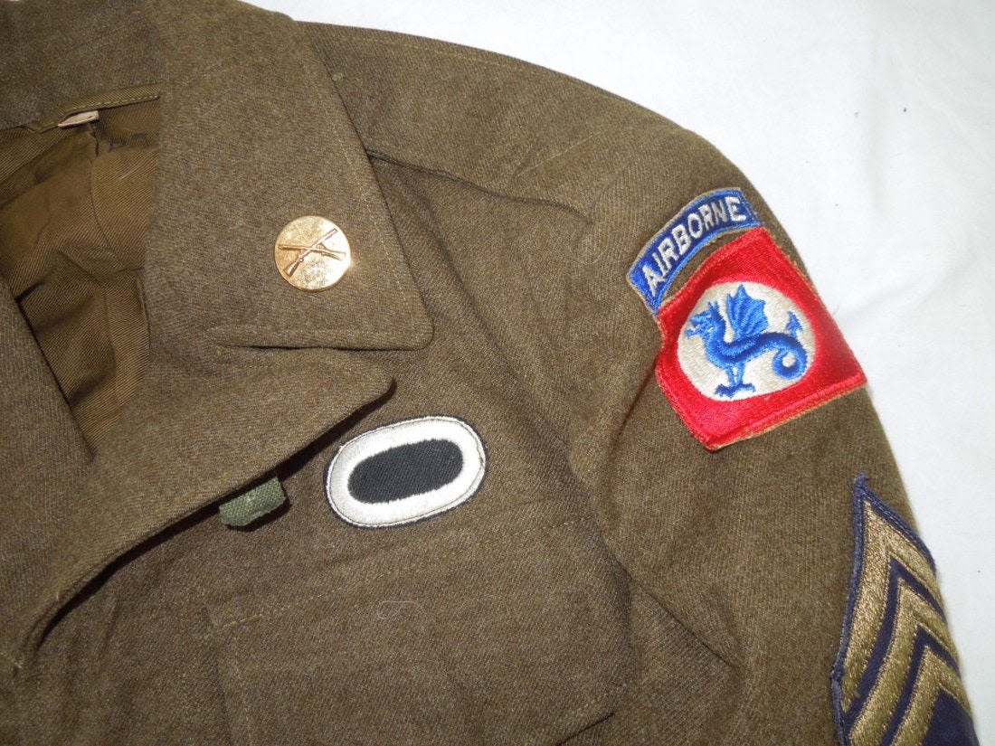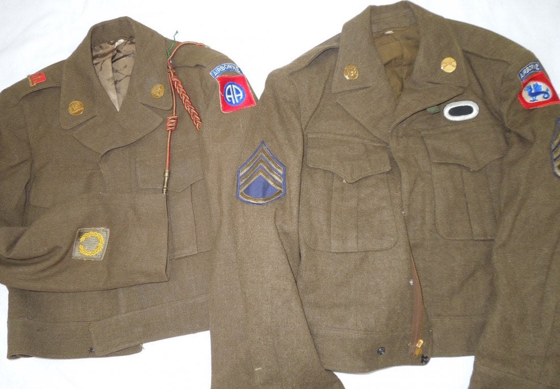 Two post WWII Ike jackets, one patched to the 508th Regimental Combat Team with a jump oval sewn on, another to the Staff Sergeant of the 82nd Airborne. Nice insignia on both, good overall condition on them.