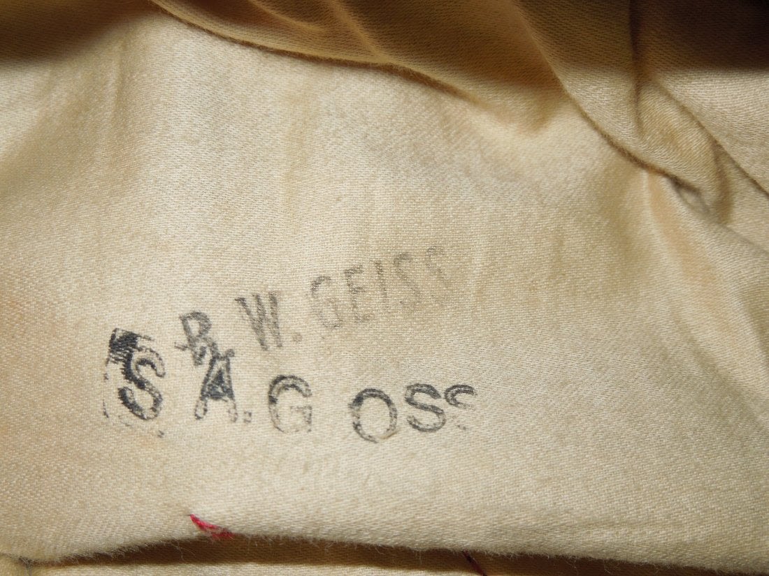 WWII USMC Master Sergeant uniform named to R.W. Geiss, a Battle of Iwo Jima Veteran, and S.A. Goss. Has all of its patches and one EGA, Some mothing throughout but displays well.