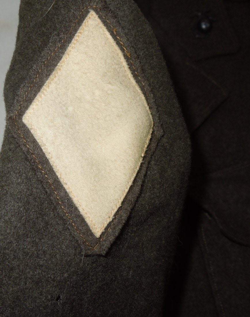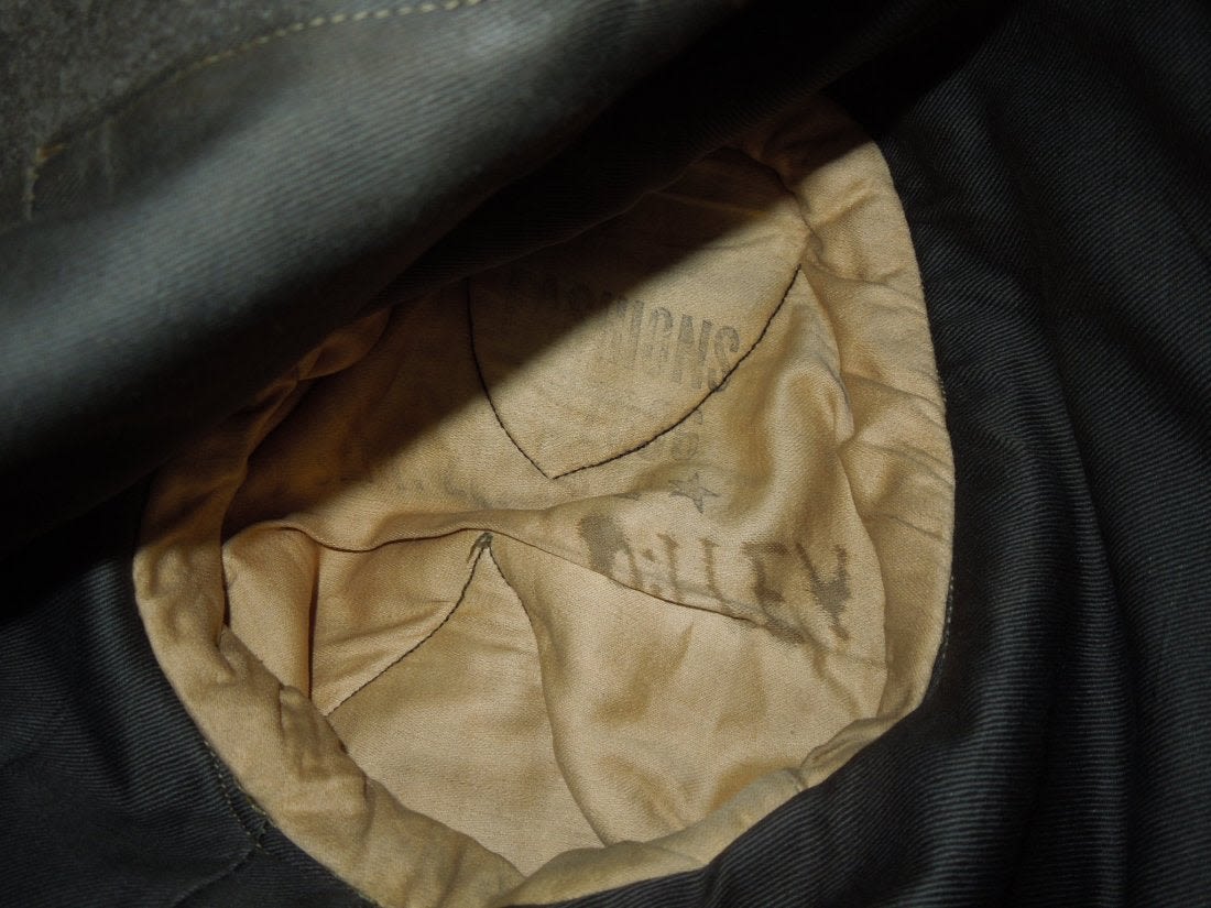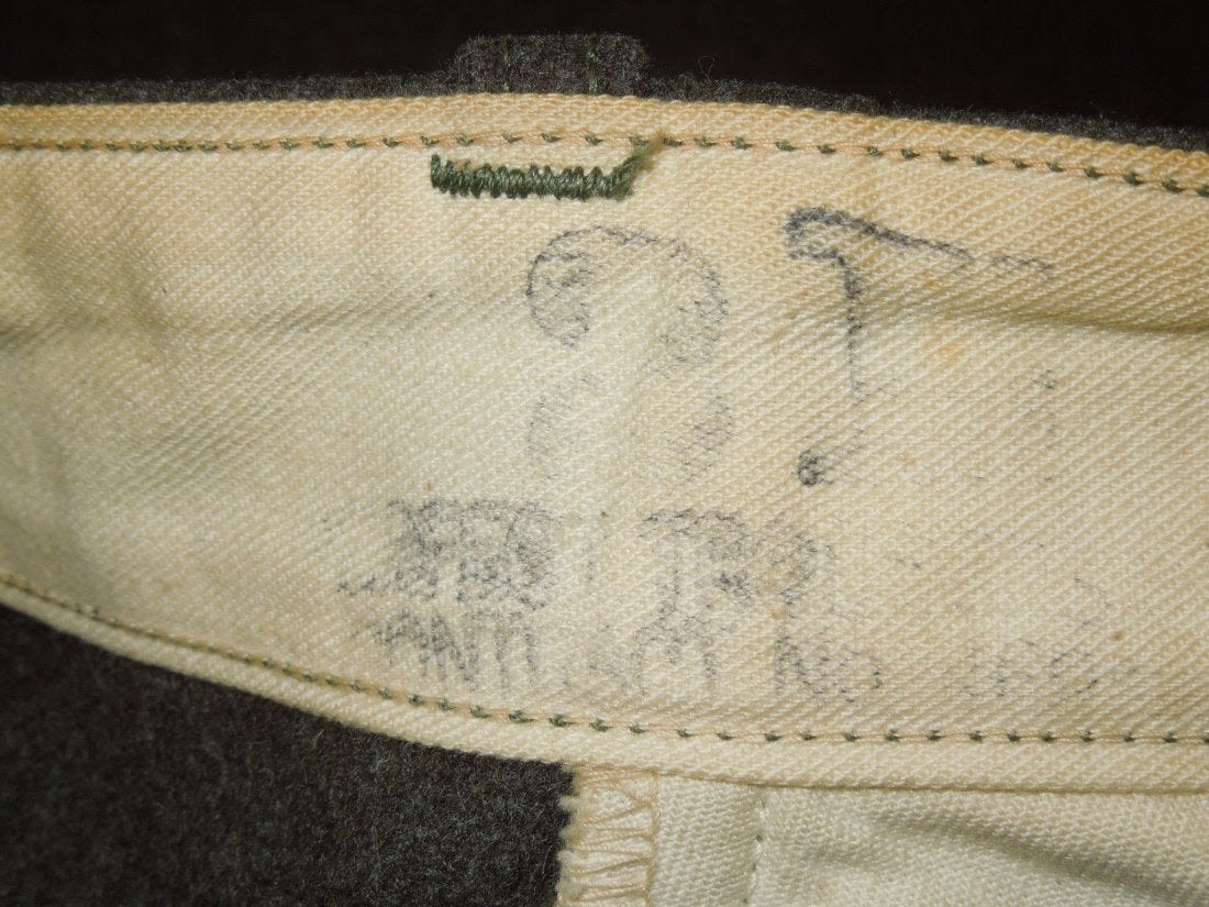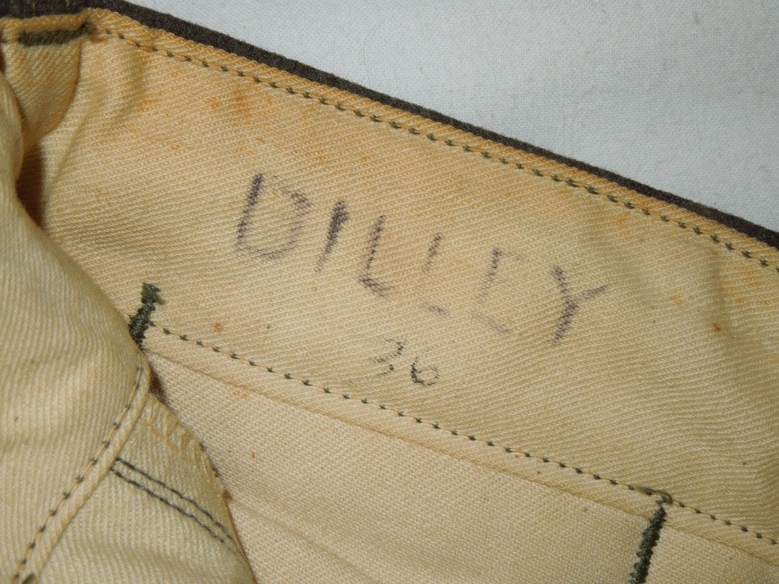 Group named to Sgt. Raymond Dilley of the 5th Engineers of the 5th Marine Division with a scarcely seen white diamond discharge patch, wool 5th MARDIV patch, pants, cap, and EGAs. Good condition with minor mothing.
