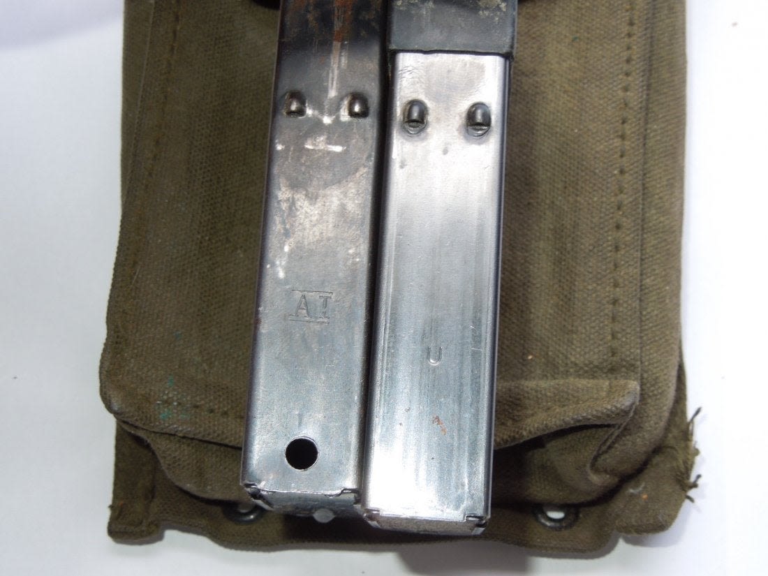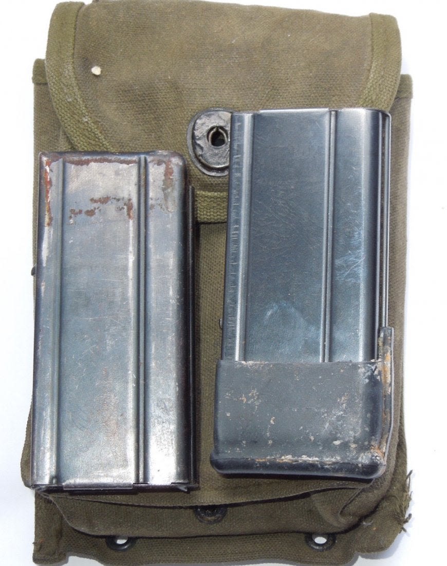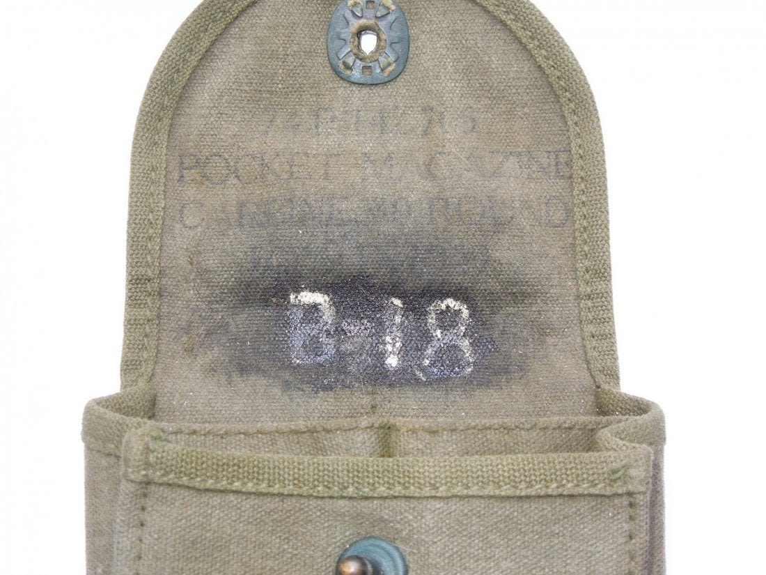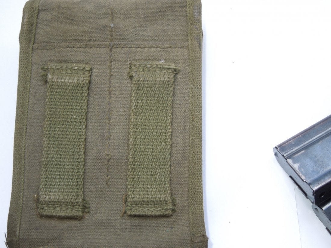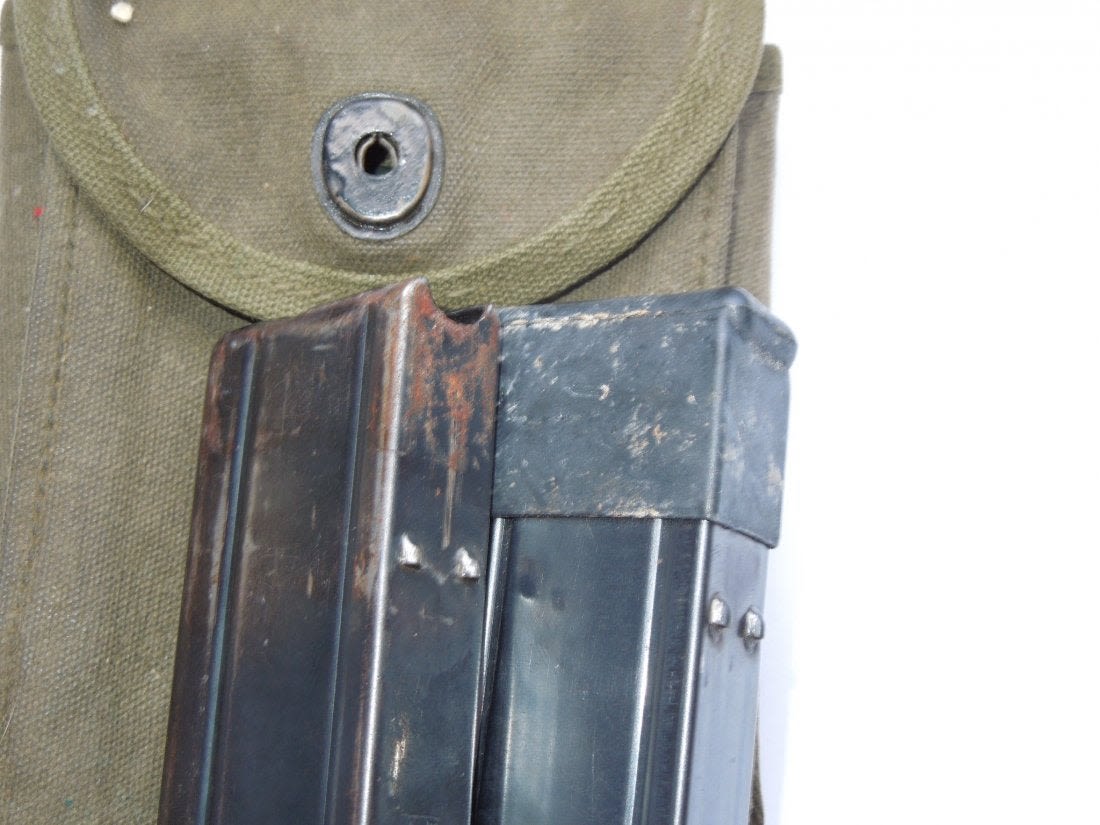 Korean War OD Green M-1 Carbine pouch and two magazines (one marked U and one AI).