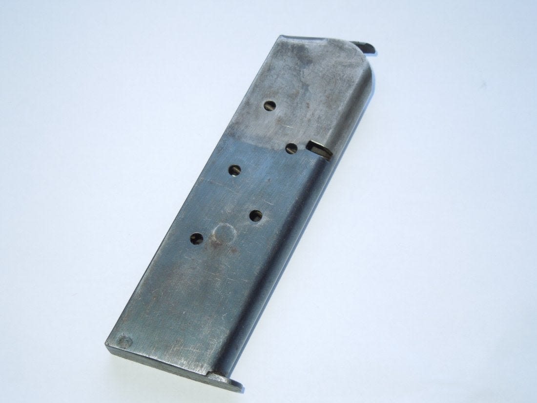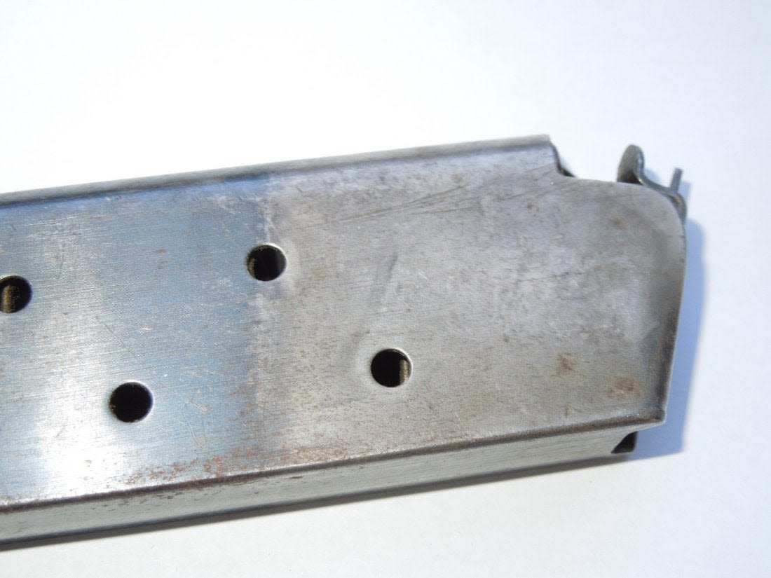 Note: This lot can only be shipped to a United States Mailing Address. Original WWI era two-tone Colt .45 pistol magazine.