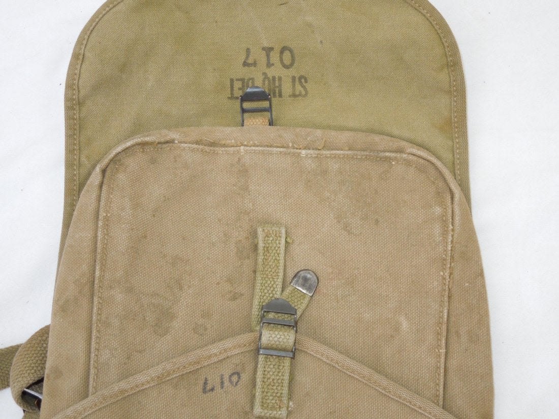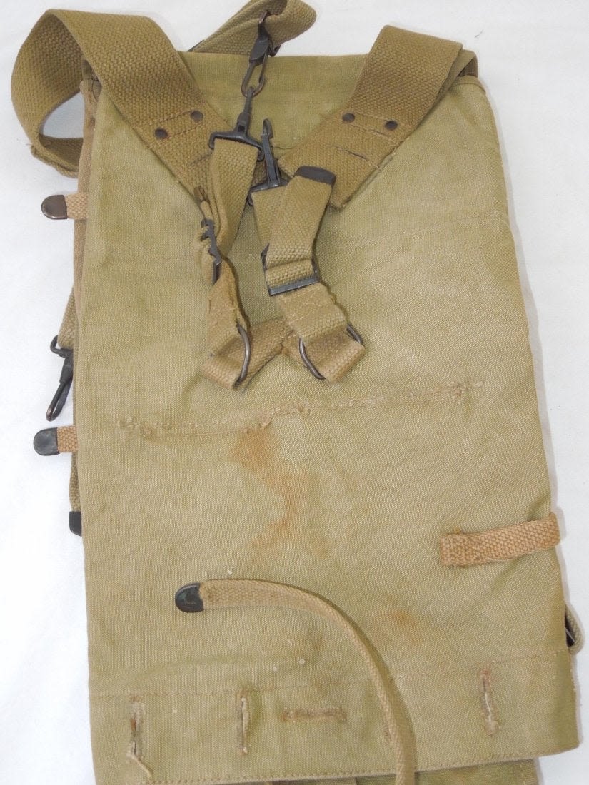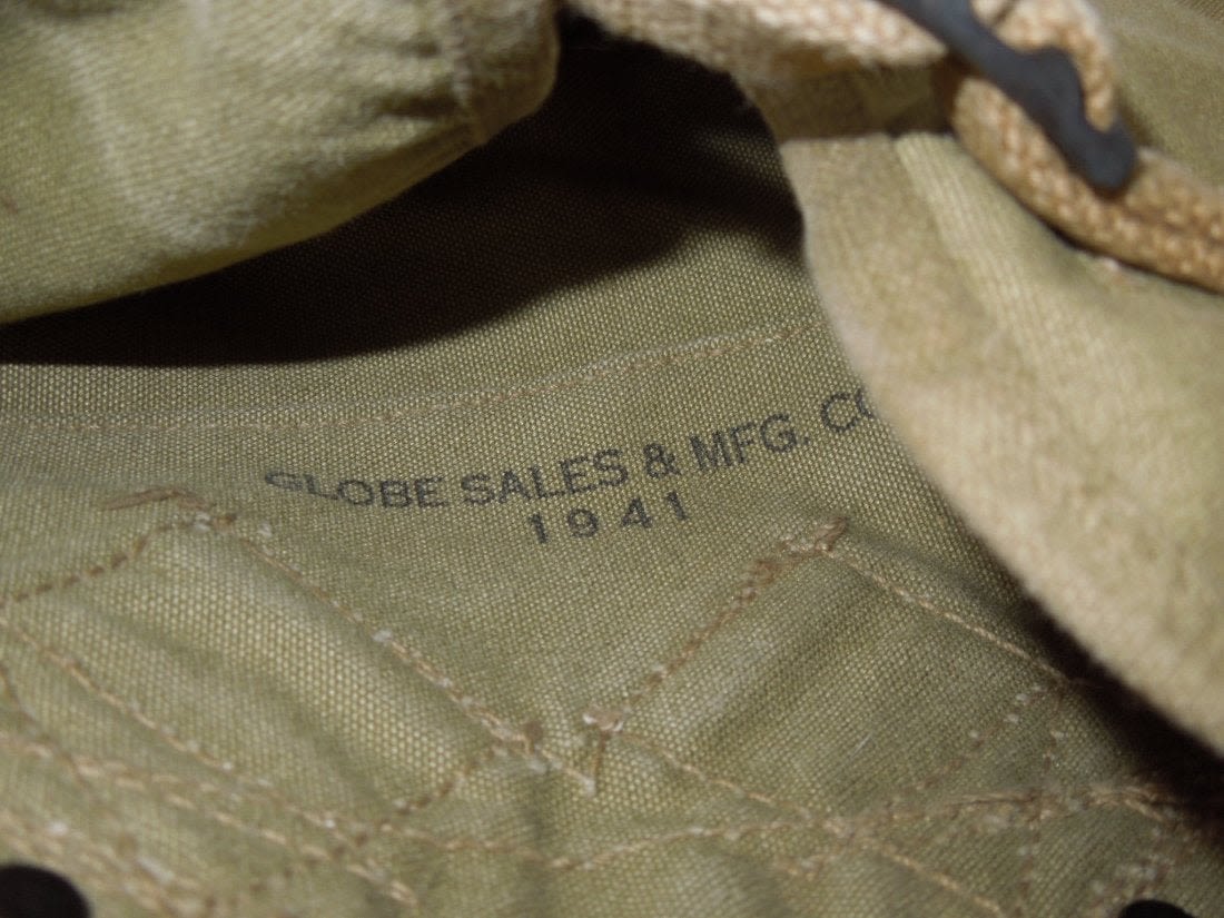 WWII 1941 US Field Pack Bag with mess kit carrier (mounted inside). Marked Globe Sales & Mfg. CO. Nice condition for its age. (III B 13)