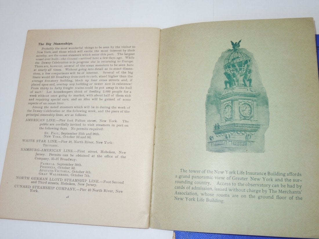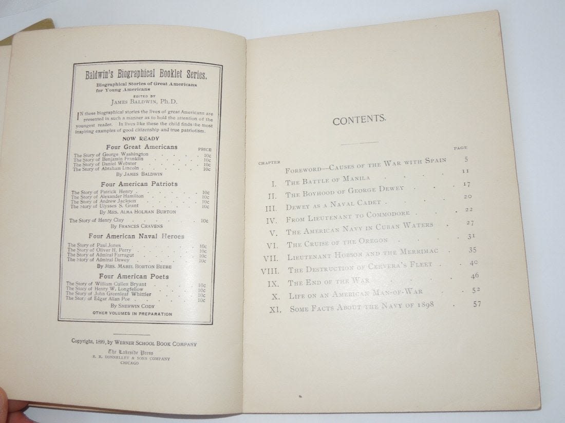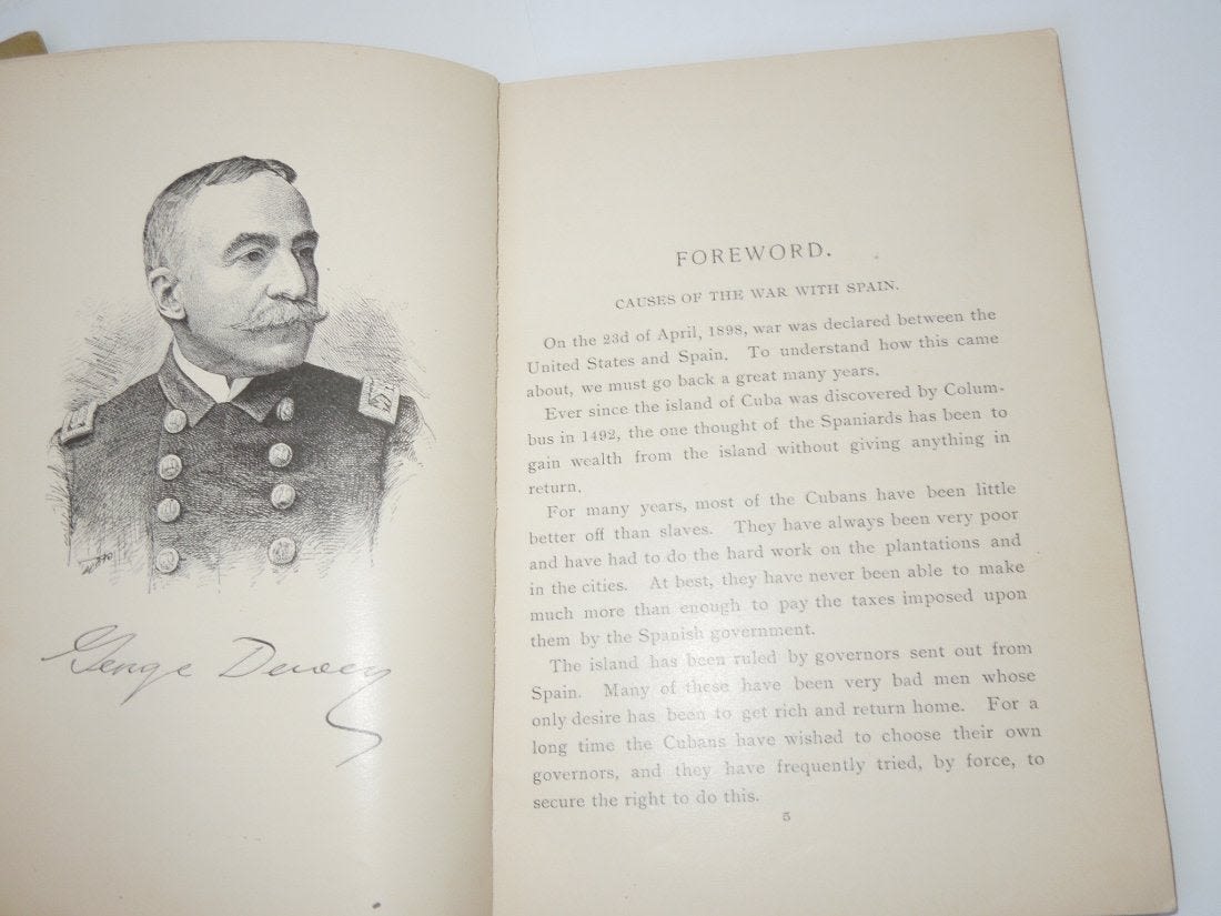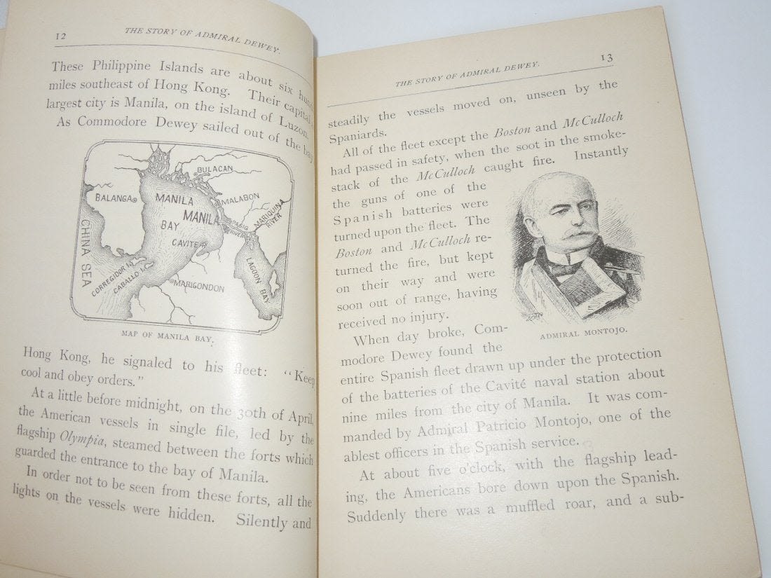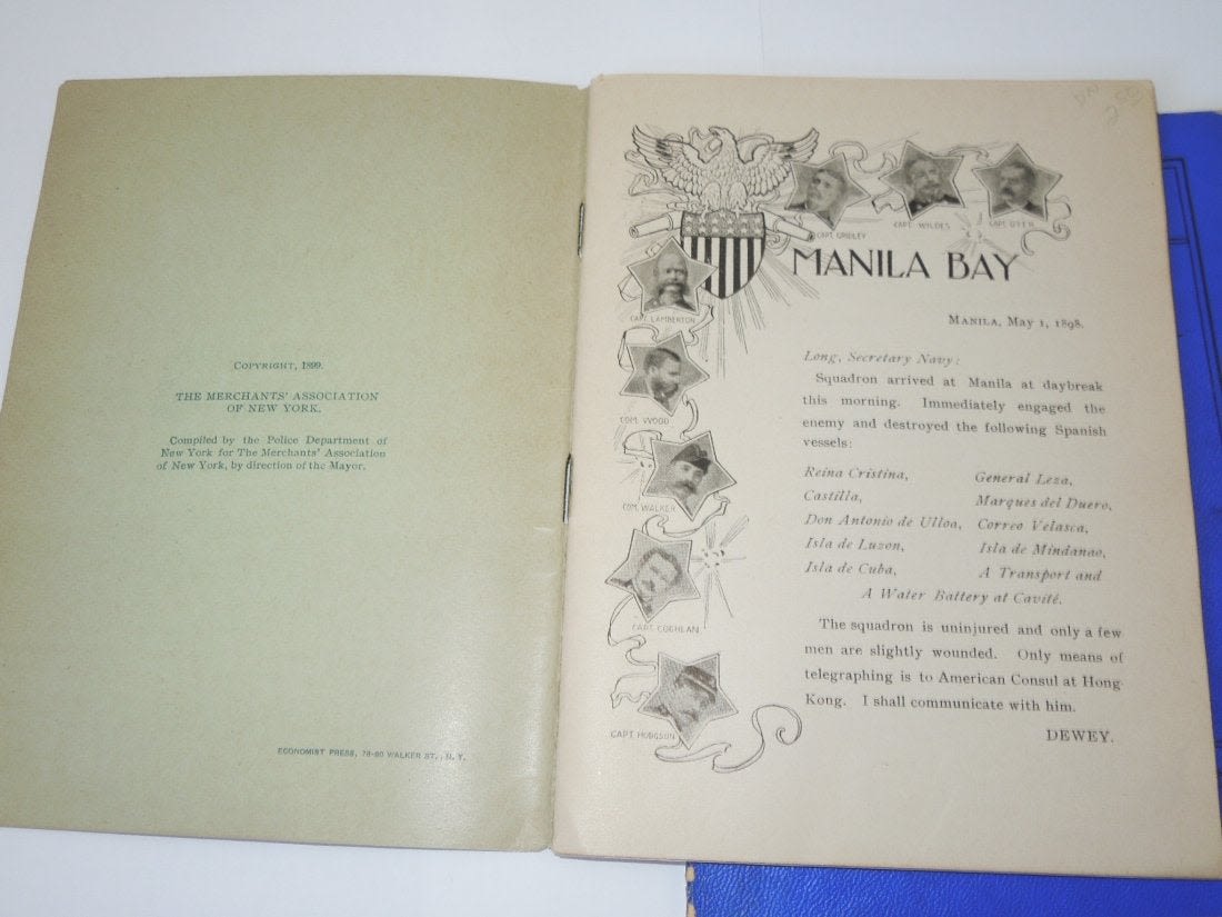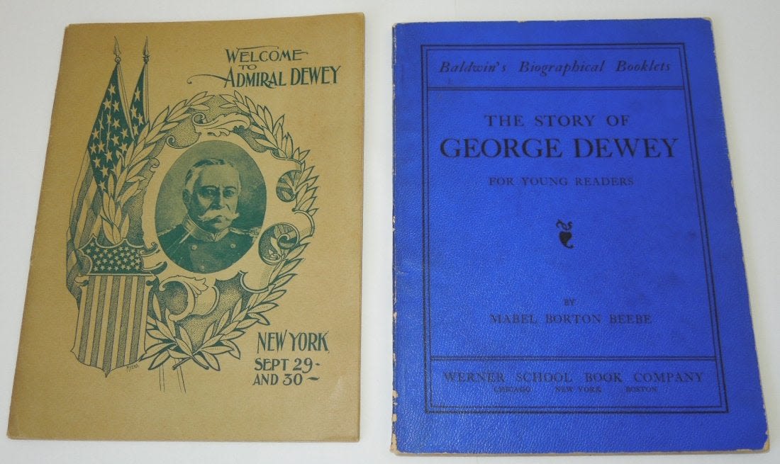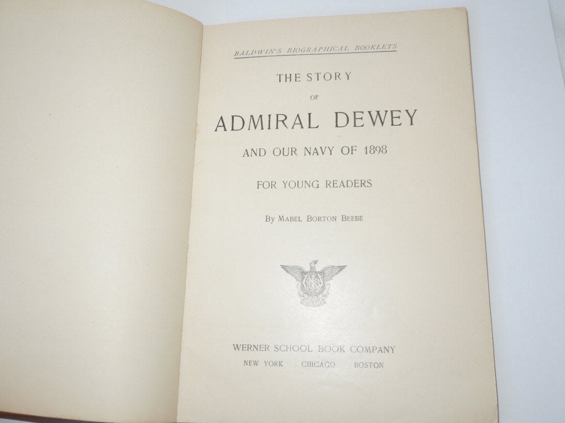 Spanish American War SAW Admiral Dewey Story & Welcome To NY Booklet. You will receive the following two books. The Story of Admiral George Dewey and Our Navy of 1898. For Young Readers. By Mabel Borton Beebe. Published by Werner School Book Company. Copyright is 1899. Pages 64. Condition is very good. Size is 5 x 6.75 inches. Welcome to Admiral Dewey New York Sept 29 and 30 booklet. 48 pages. Copyright is 1899 by The Merchants Association of New York. Size is 5 x 6.75 inches. Condition is very good for its age.