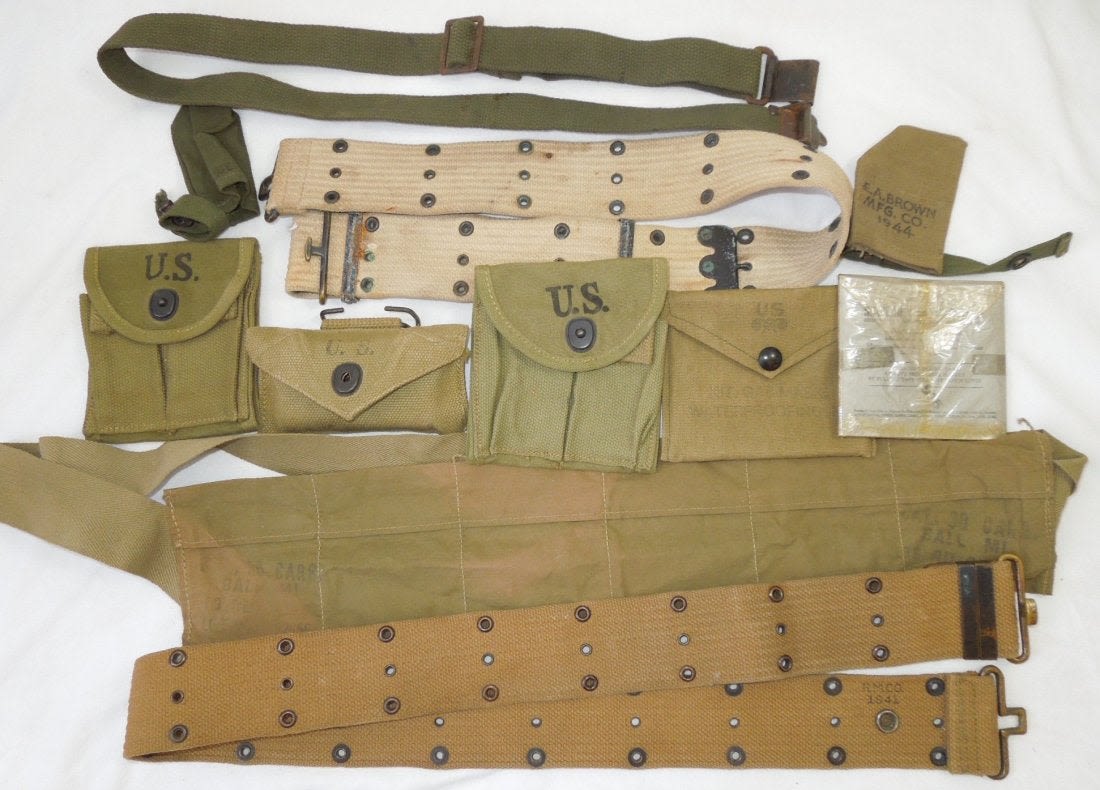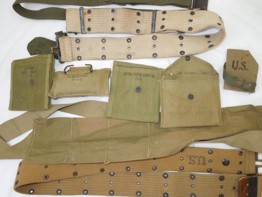 WWI - WWII US Field Gear Ammo Pouches Belts Lot