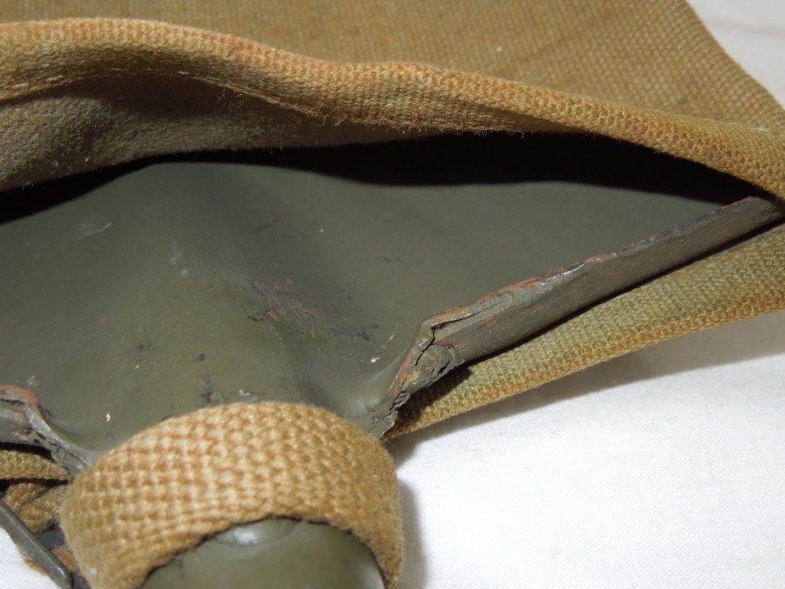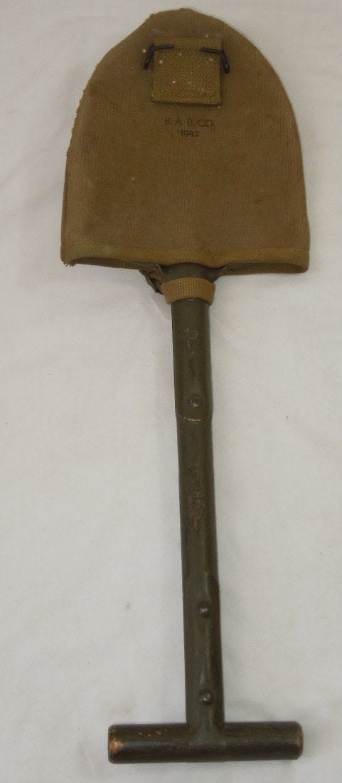 WWII US Military 1942 T Handle Shovel and Cover. Cover is marked B.A.B. CO. Very good used condition for its age. (III B 23)