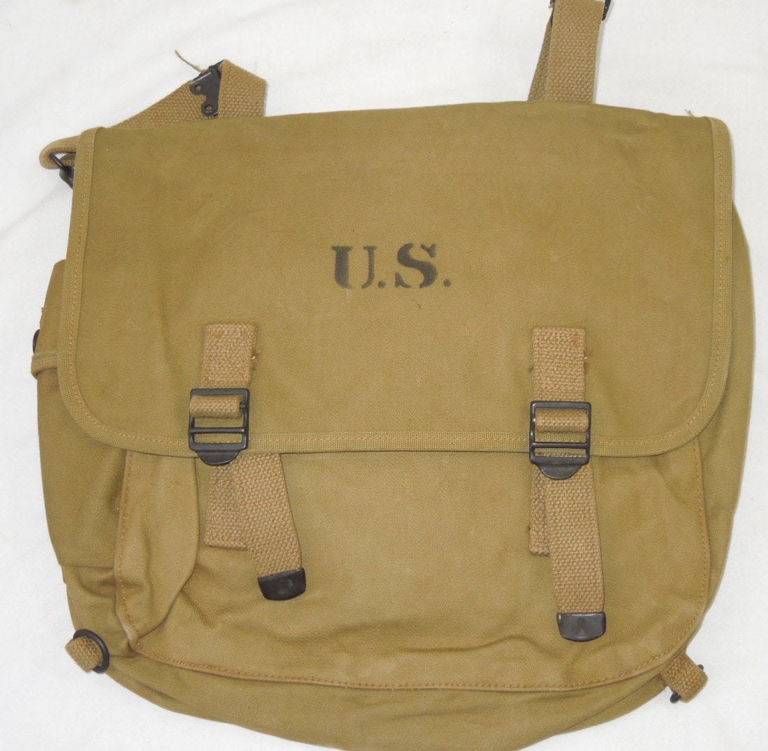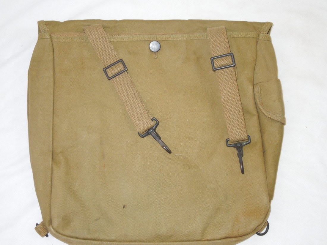 WWII Rubberized US Musette Bag Langdon. Marked: Langdon Tent & Awning CO. Manufactured in 1941. Very good condition for its age.