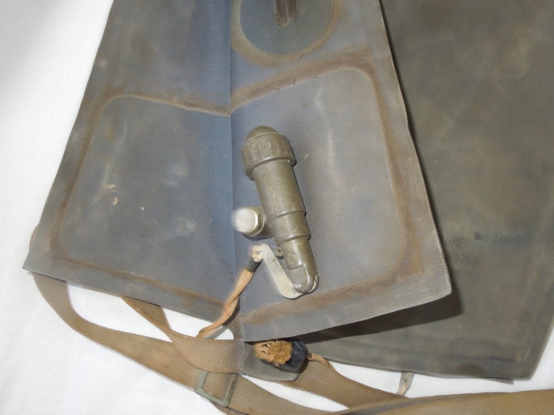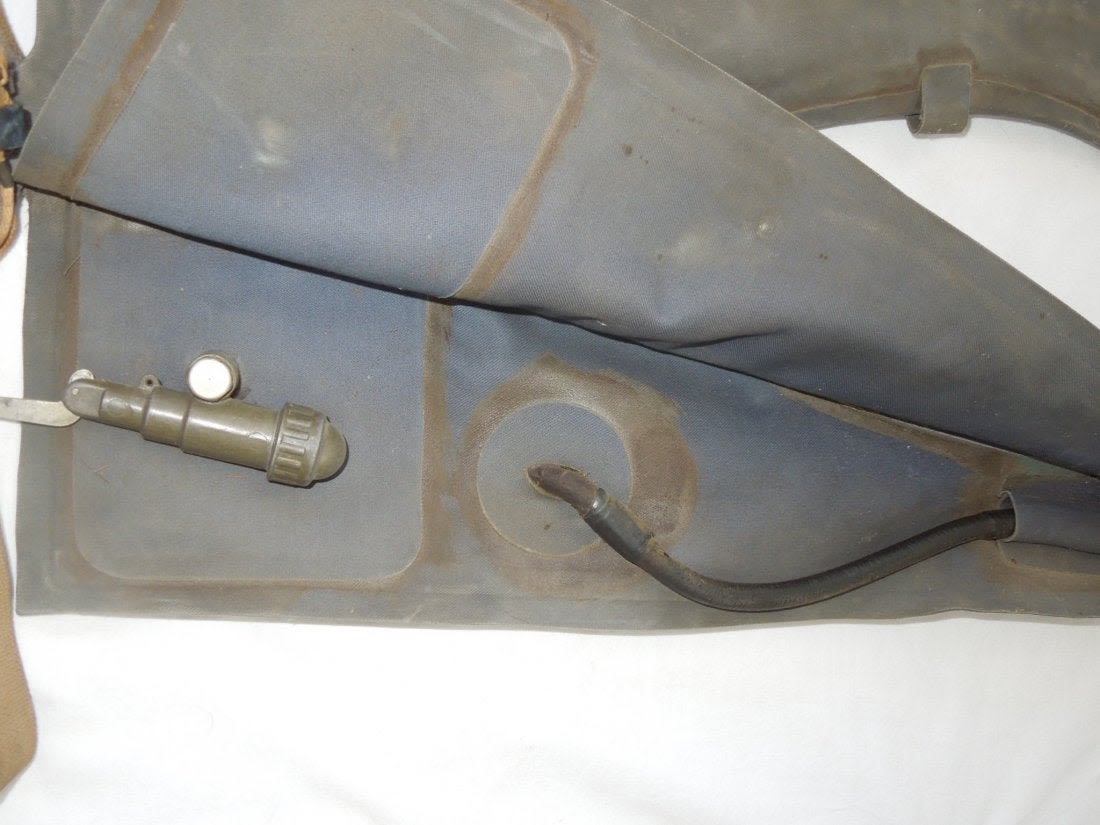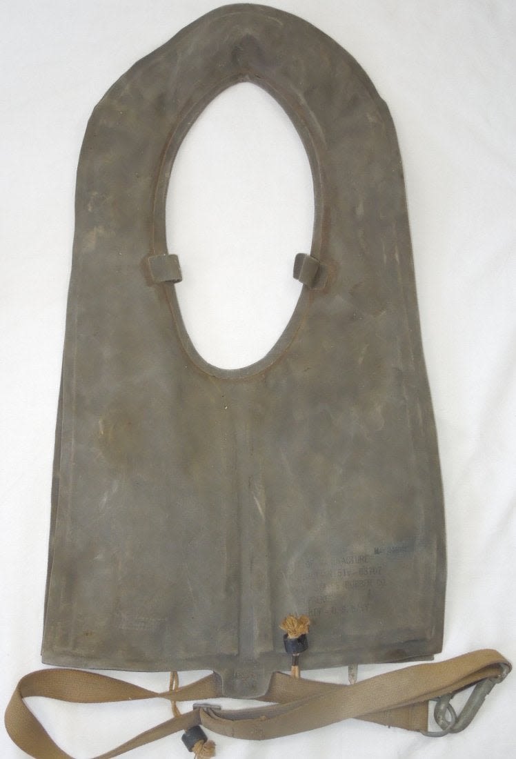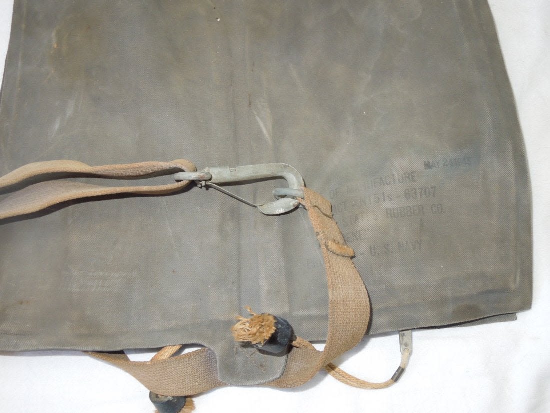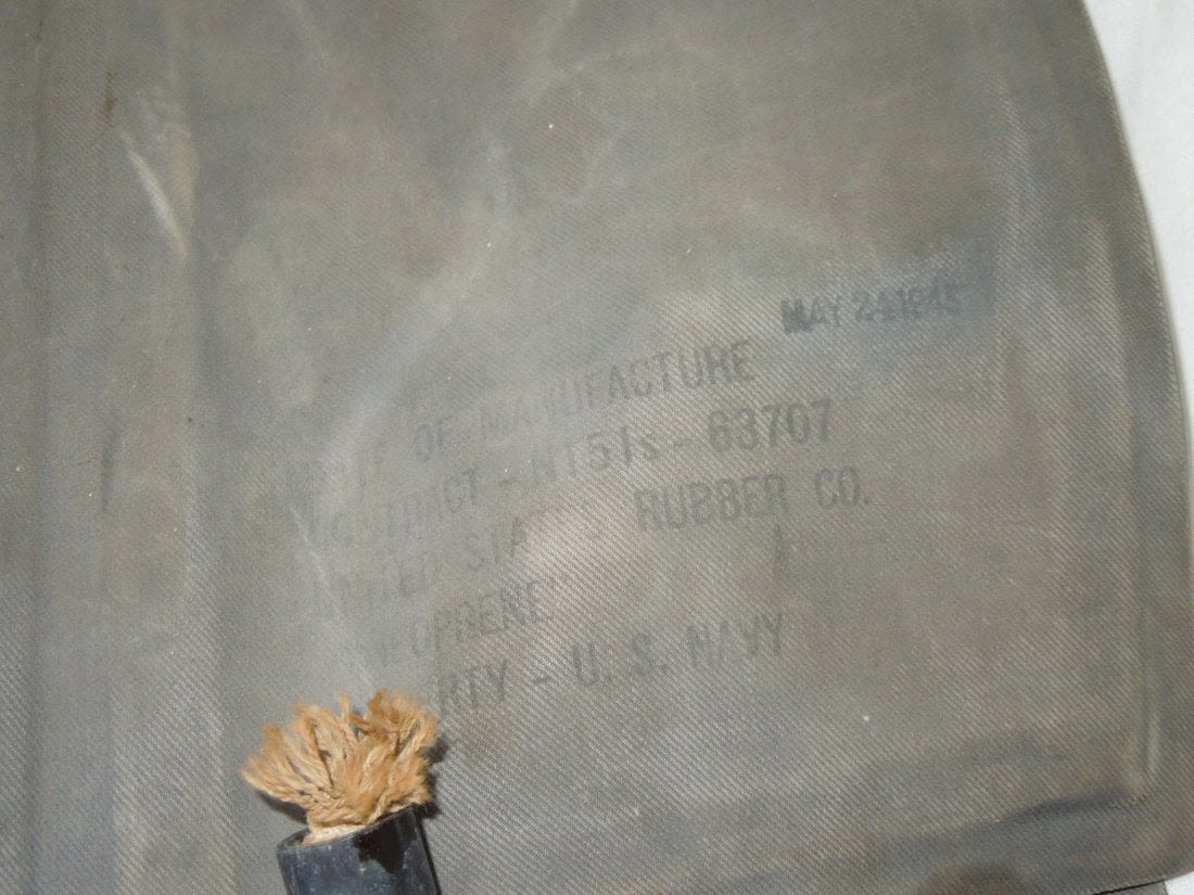 Original WWII era gray life preserver with faint markings dating it to Spring 1945.