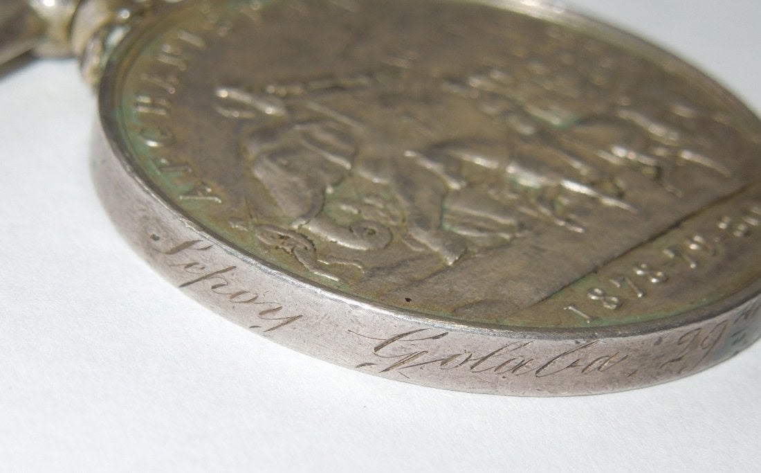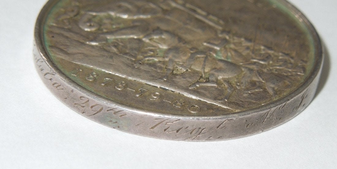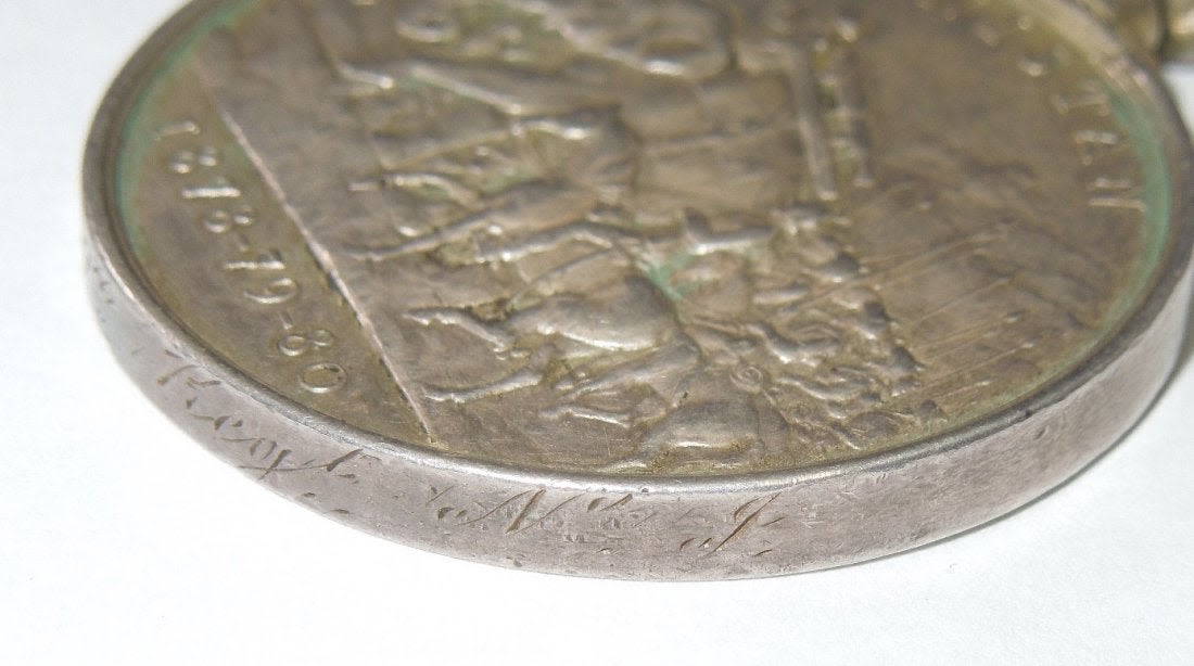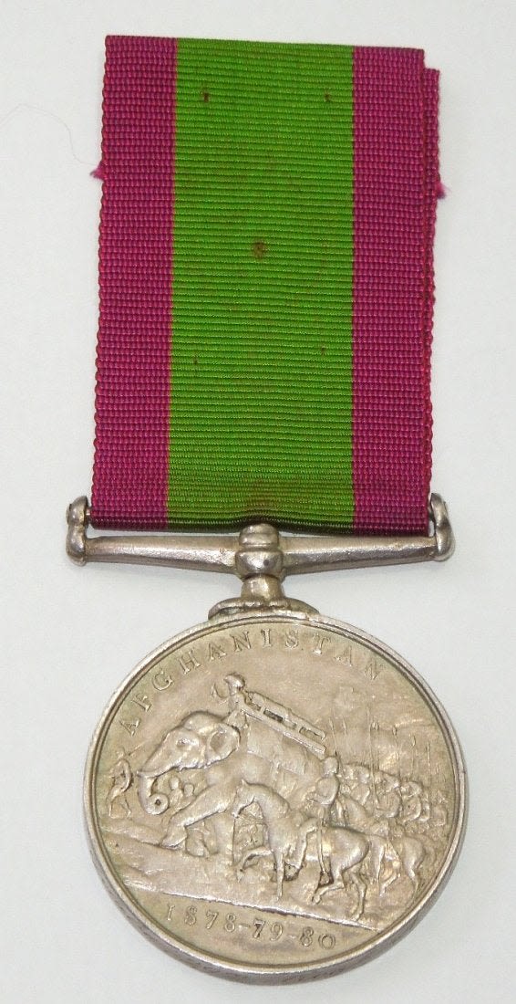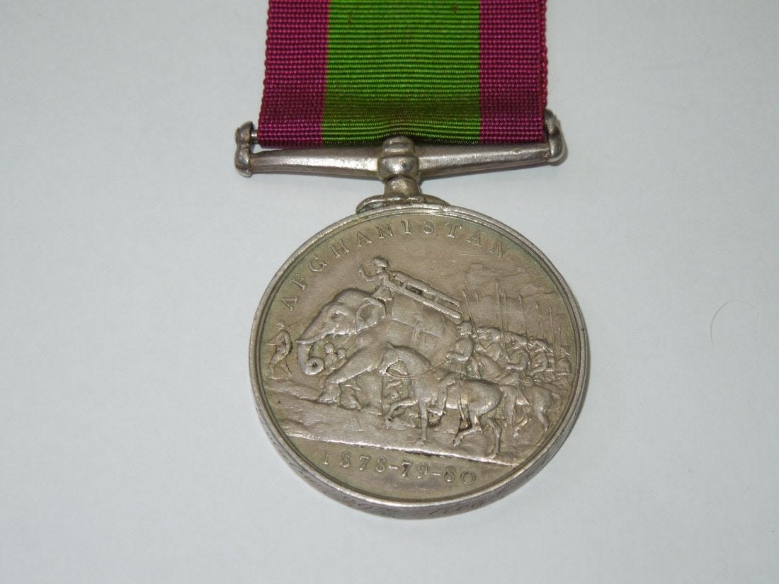 Original 1878-80 Afghanistan Medal engraved to Sepoy Golaba, 29th Bengal Native Infantry.
