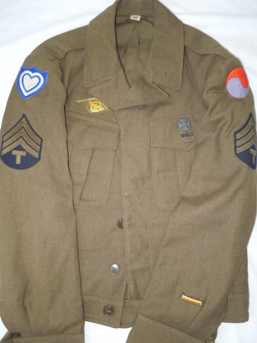 Korean War era XXIV Corps and Military Government of Korea patched Ike jacket that came out of the Trenton, NJ area circa 1996 and has been with the consignor ever since. Features a theater made silk screened patch and other insignia as shown.