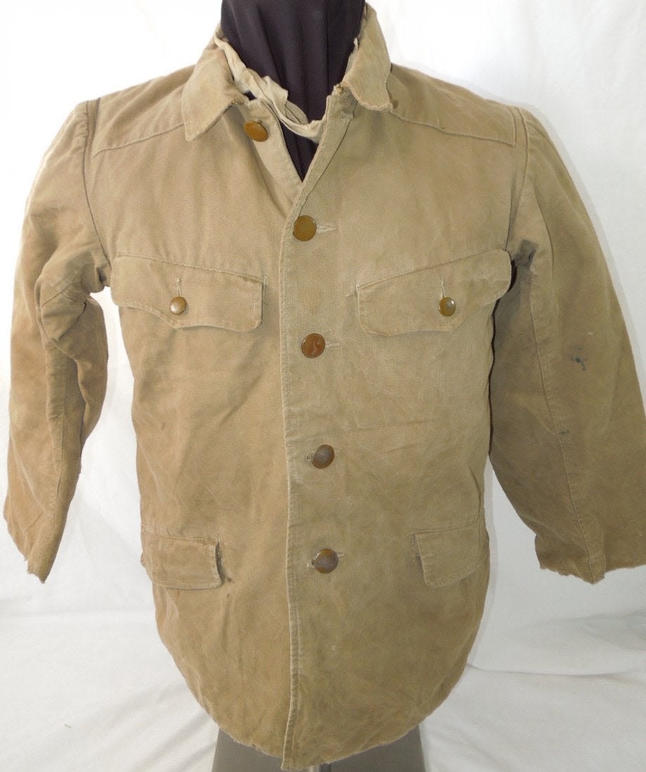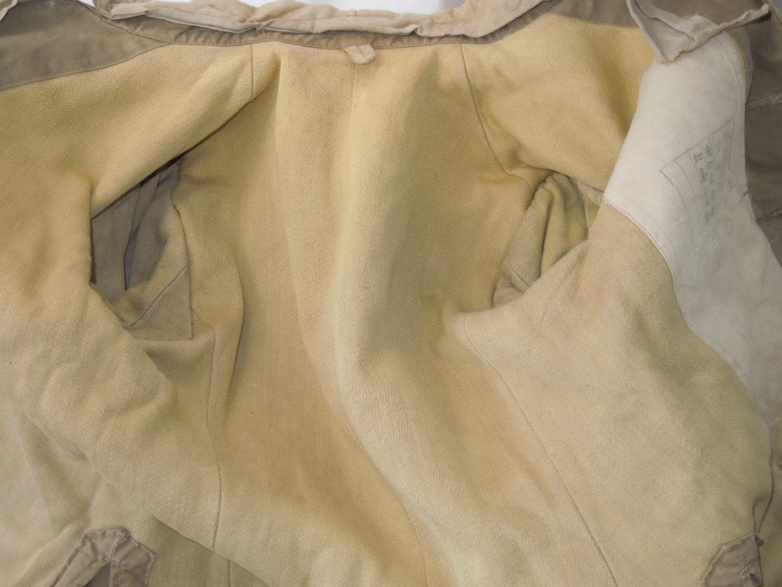 WWII Japanese Military Winter style jacket and trousers as used by troops in the Aleutians Campaign. The Japanese markings inside both pieces are still readable.