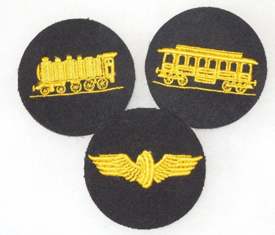 WWII German Reichsbahn Railroad patches- Locomotive Driver, Passenger Car Service, Railway Conductor.