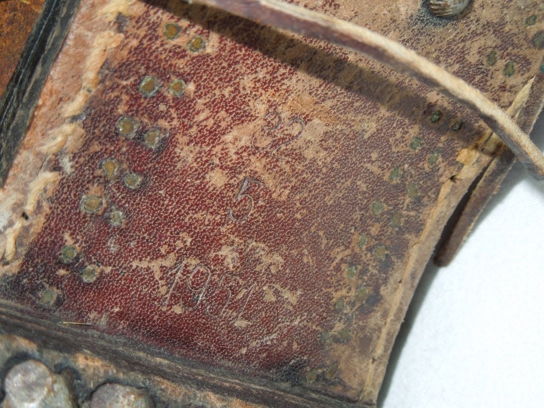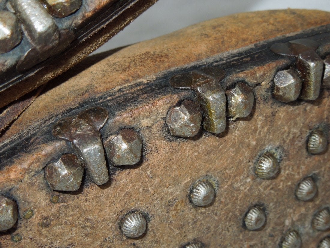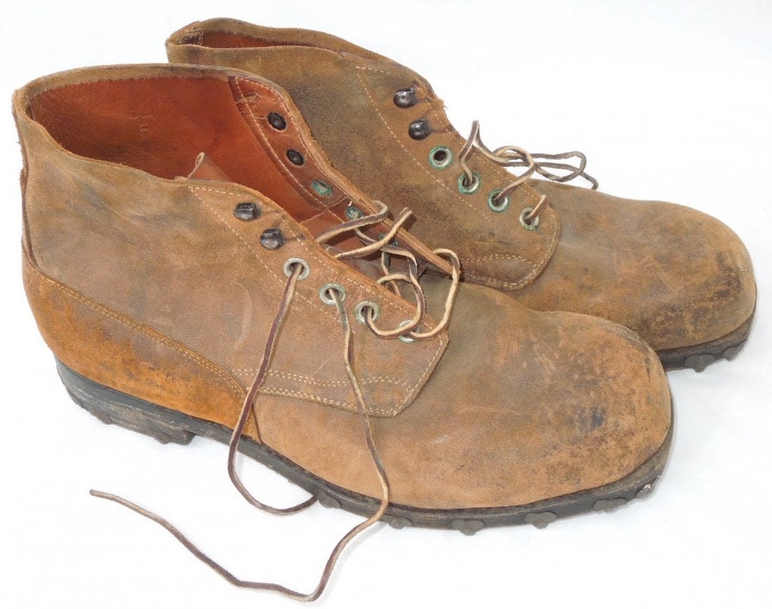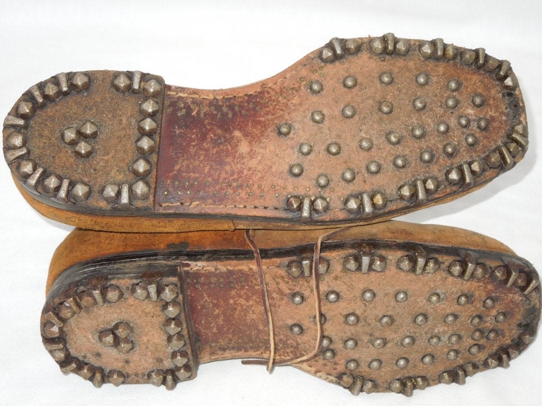 Pair of military Hobnailed boots with numbers stamped inside and 1951 on the bottom of each. Large sized.