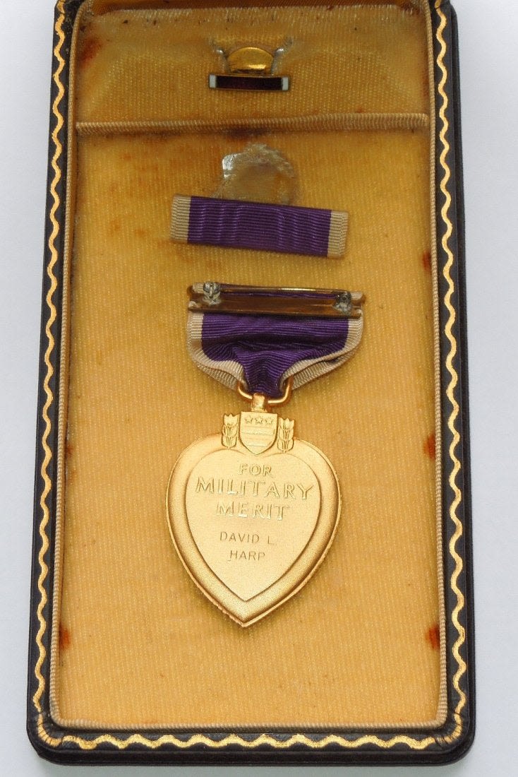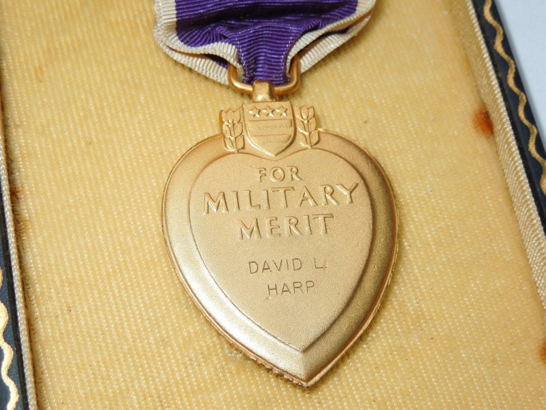 Original Named Vietnam War era Purple Heart in case to David L. Harp, of Canastota, New York. He was in Vietnam with the 3rd Battalion, 21st Insantry, 196th Light Infantry Brigade, 23rd Americal Division, Circa 1967 – 1968.