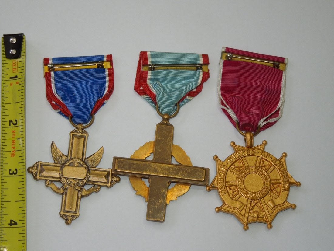 Lot of three Vietnam Era or newer US medals: Distinguished Service Cross, Air Force Cross, and Legion of Merit. All have Crimp Brooches.