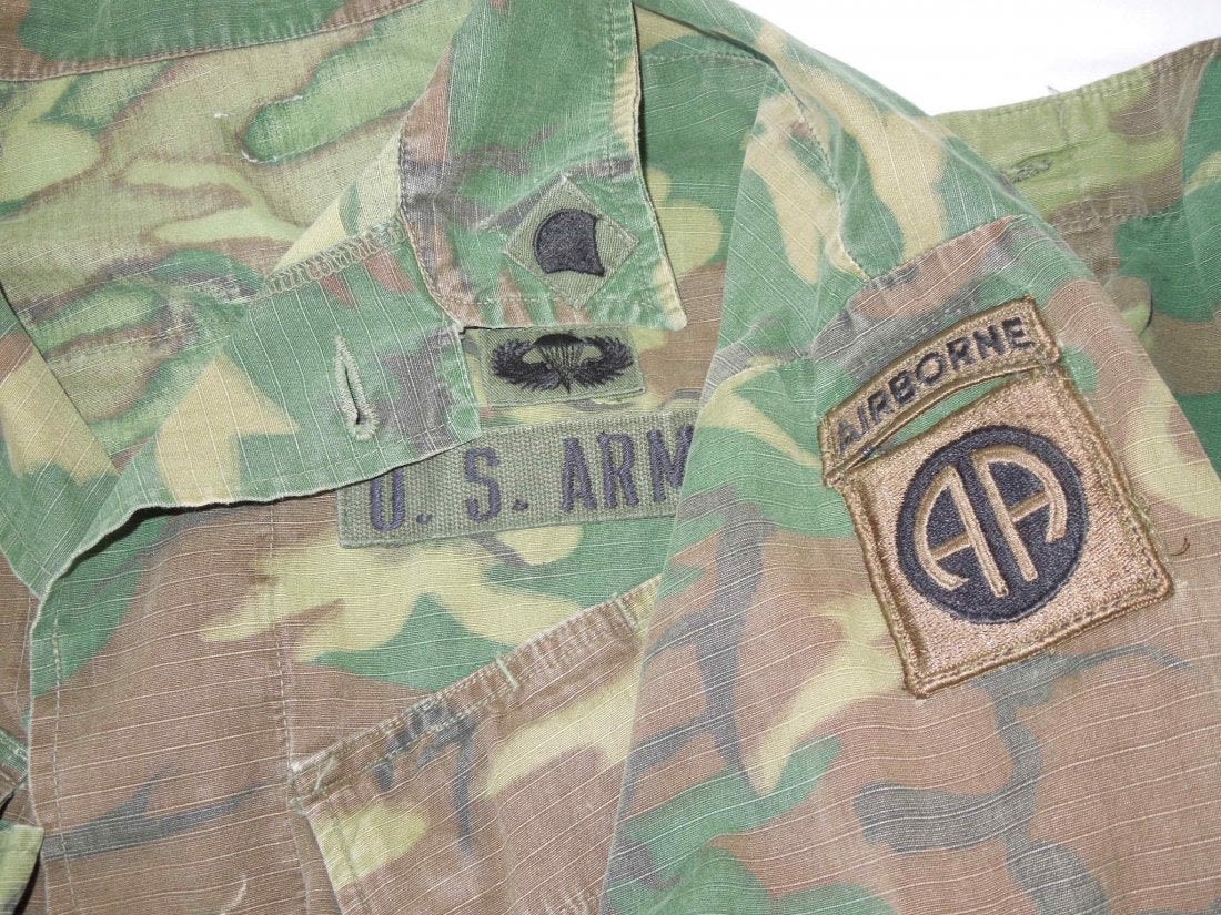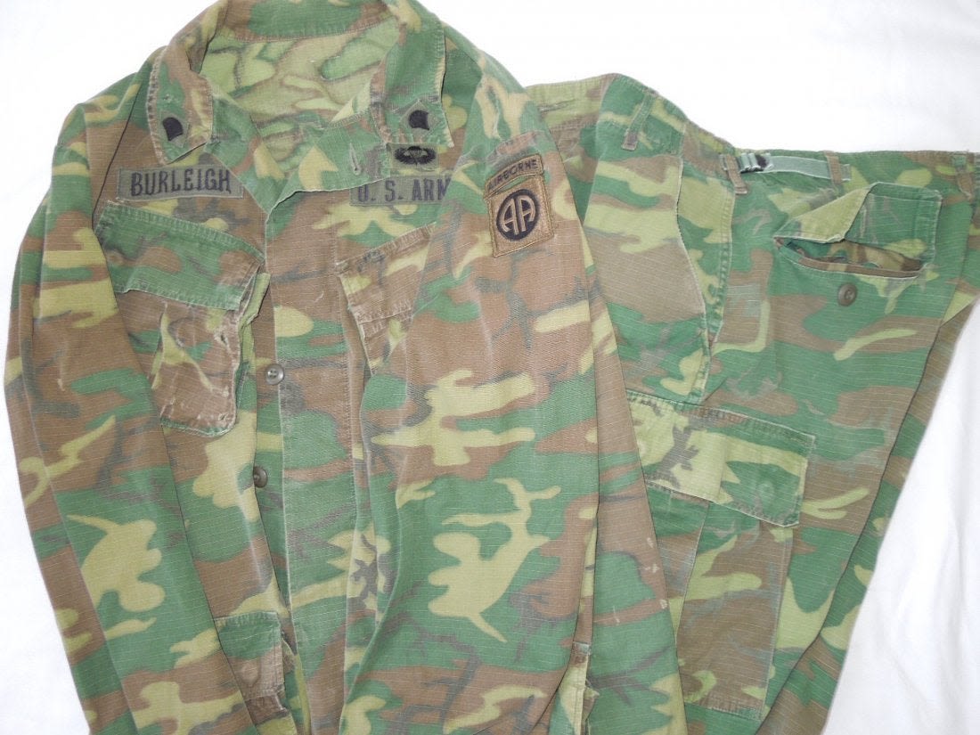 82nd Airborne Specialist ERDL Camo jacket and pants. Tags are gone from the jacket, which has some holes in the front right pocket.