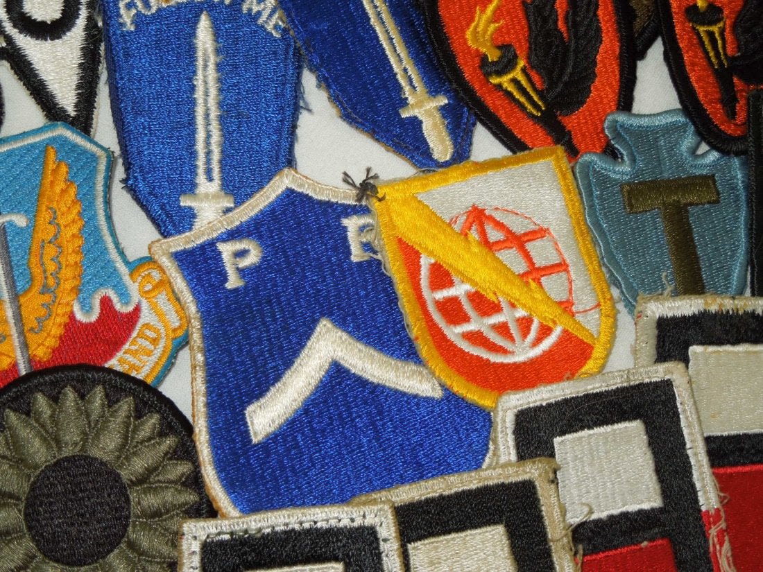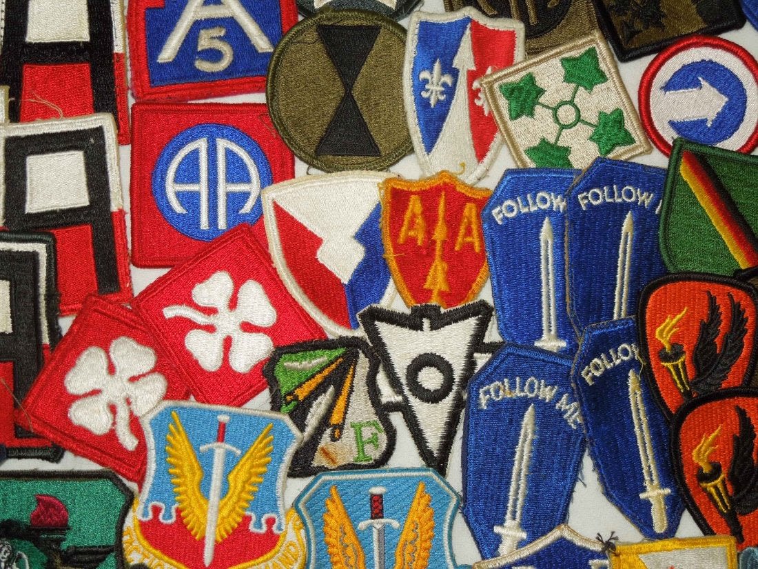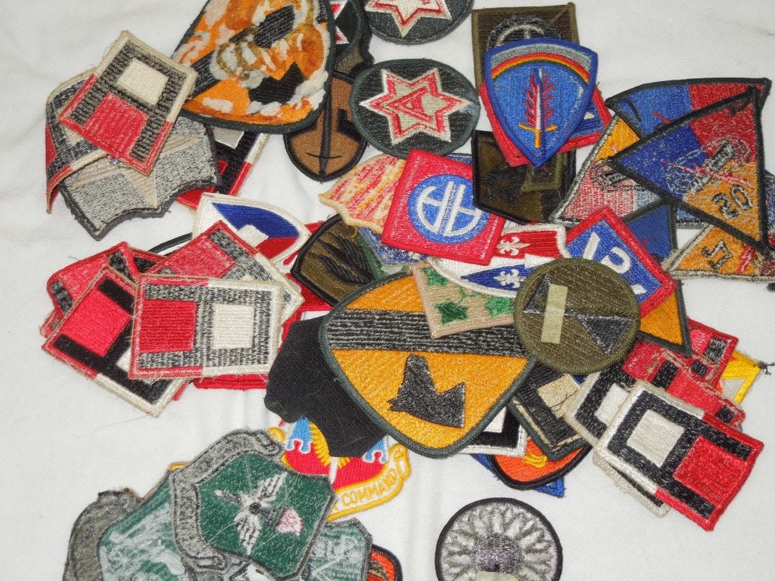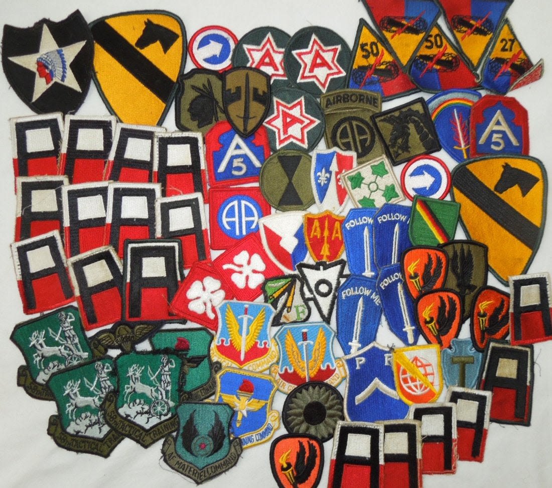 Lot of approximately 60 plus post WWII – Modern produced US Army / Air Forces patches including Infantry Divisions, Airborne, Armored, Armies, etc. Good condition and most are used.