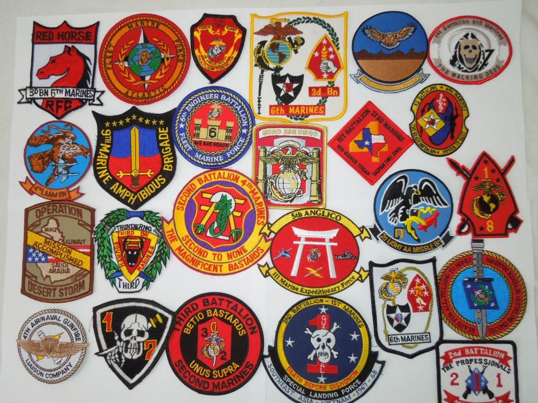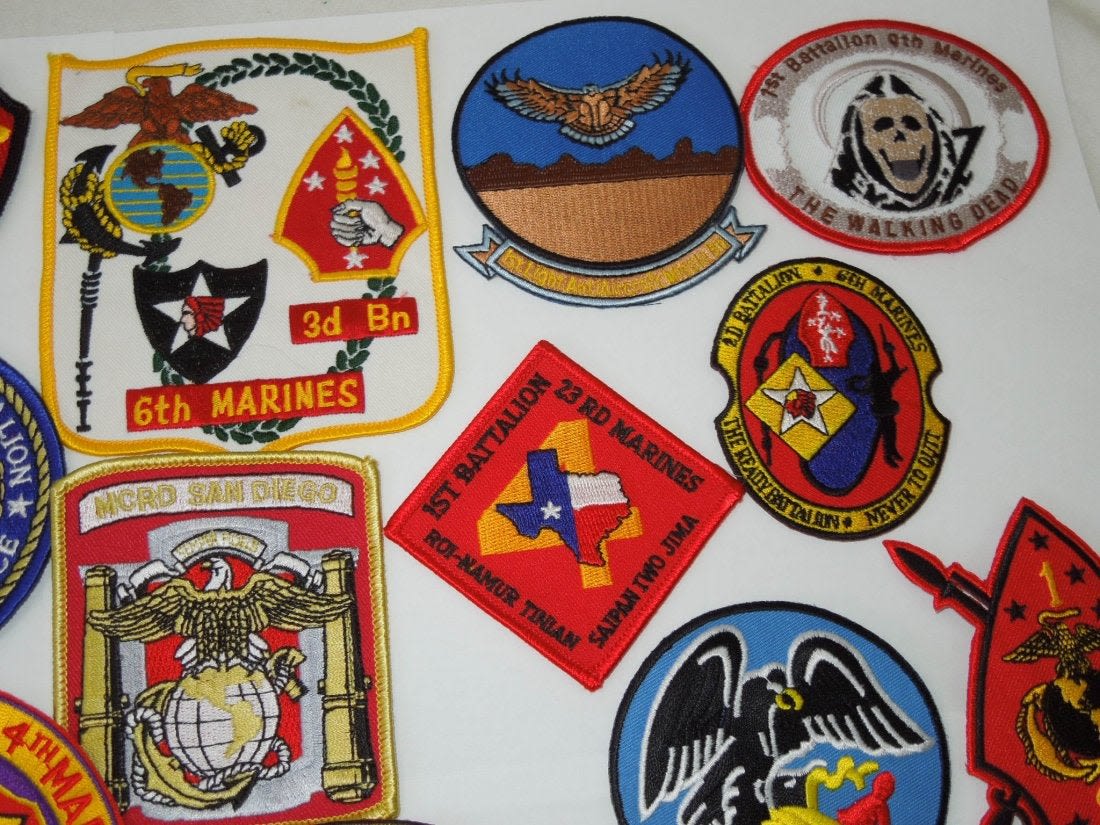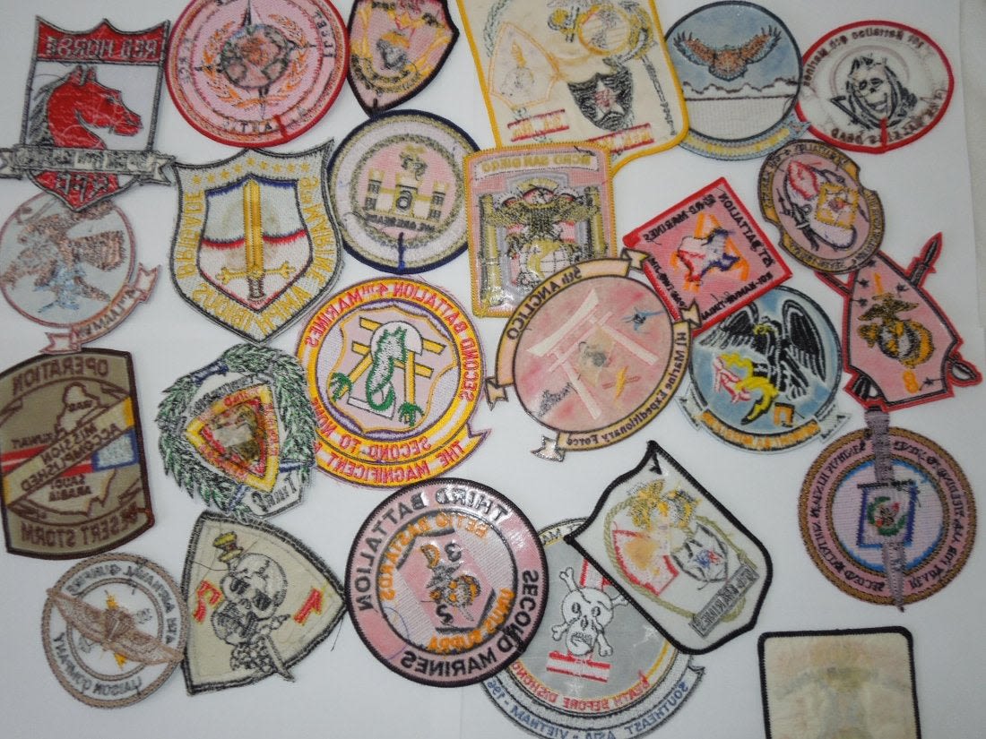 Lot of various US Marine Corps Patches, mostly 1970s to 2000s era. Some are custom made, and others are more of a novelty type. 25 Pieces in this group.
