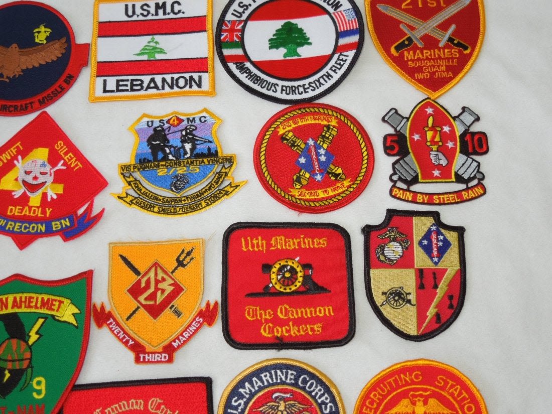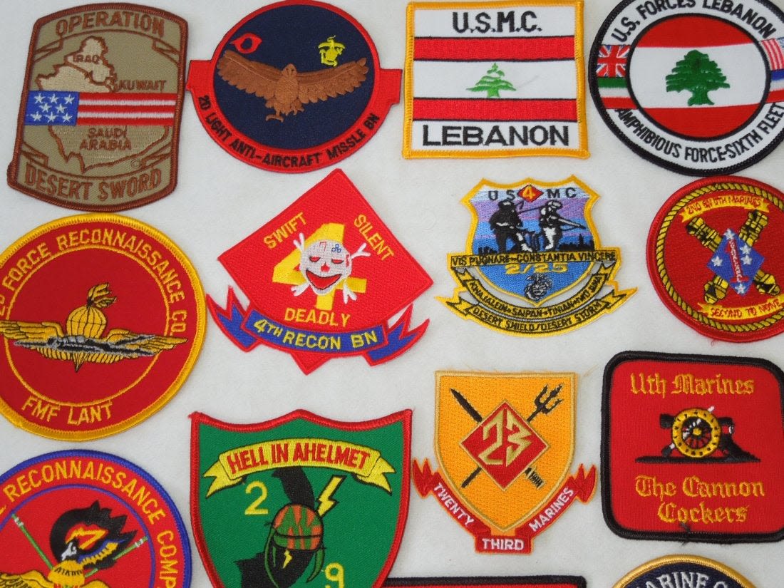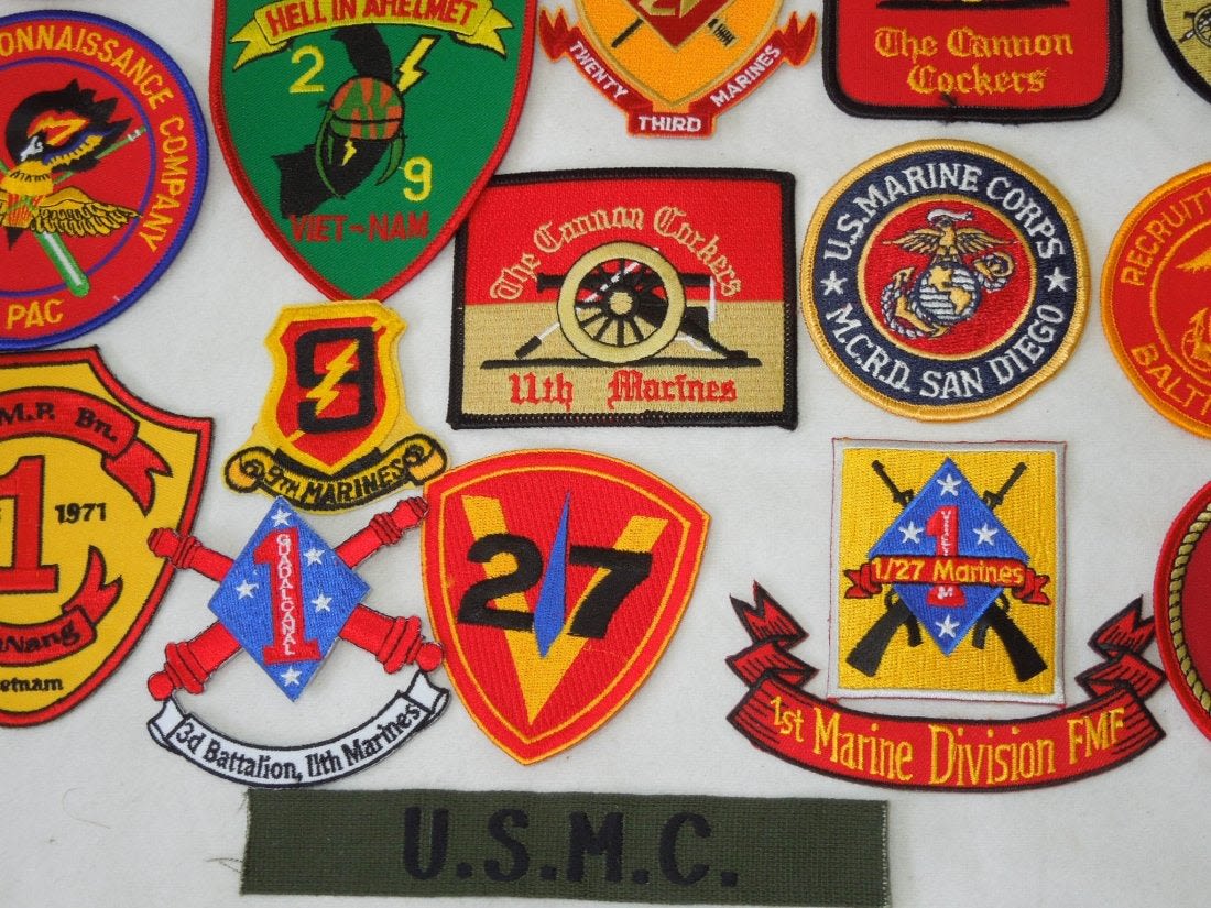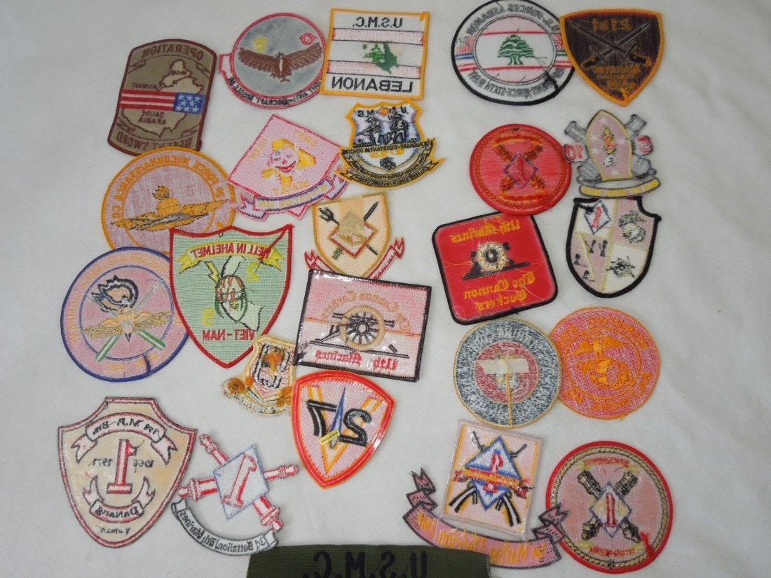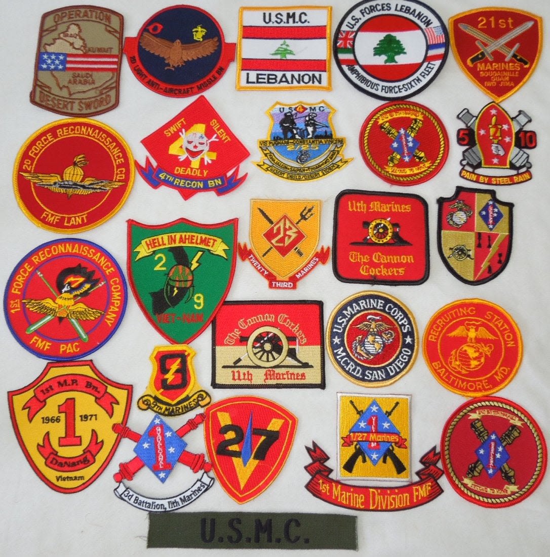 Lot of various US Marine Corps Patches, mostly 1970s to 2000s era. Some are custom made, and others are more of a novelty type. 25 Pieces in this group.
