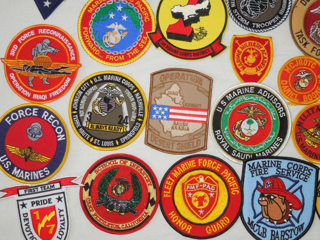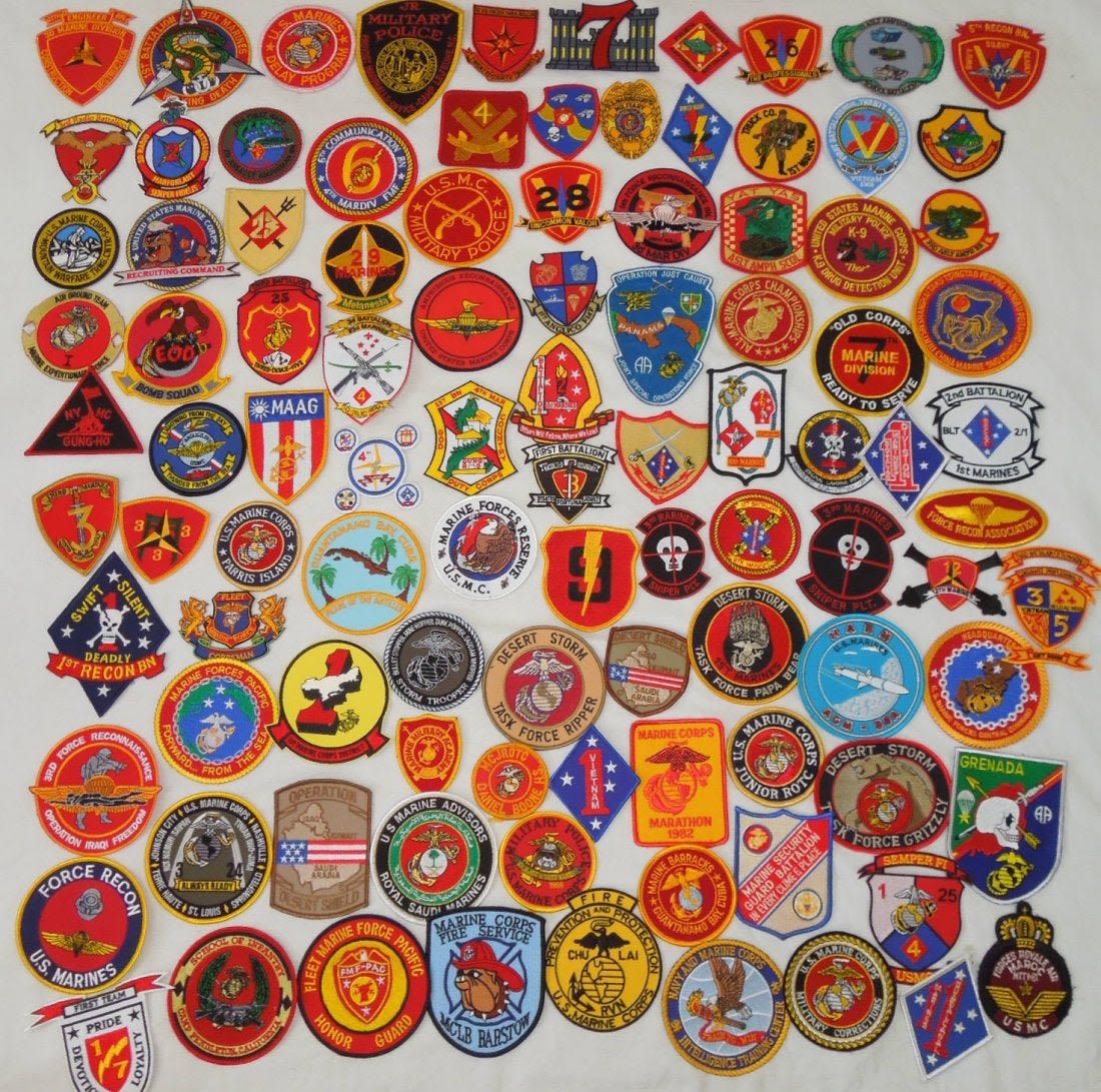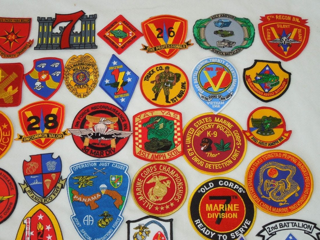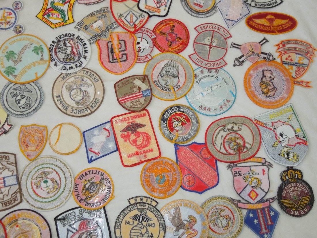 Lot of various US Marine Corps Patches, mostly 1970s to 2000s era. Some are custom made, and others are more of a novelty type.