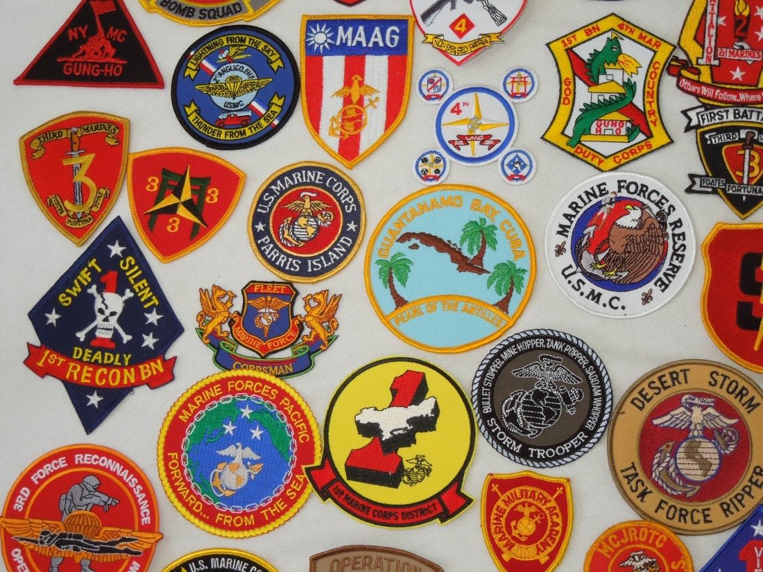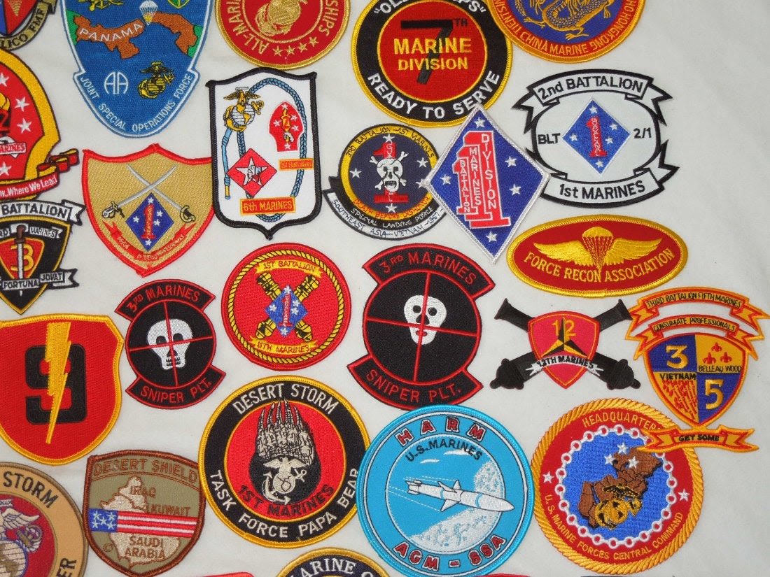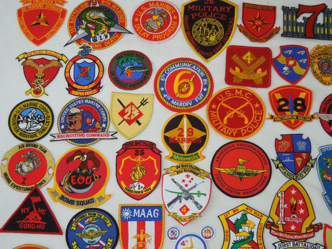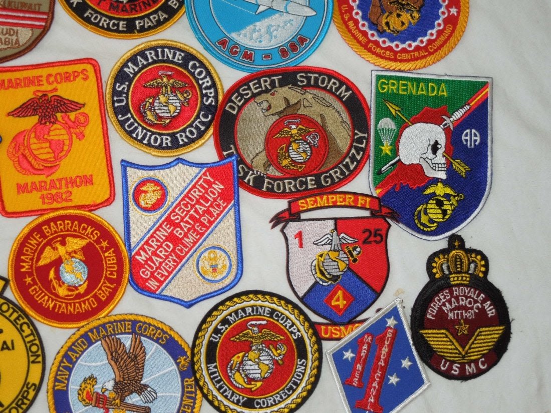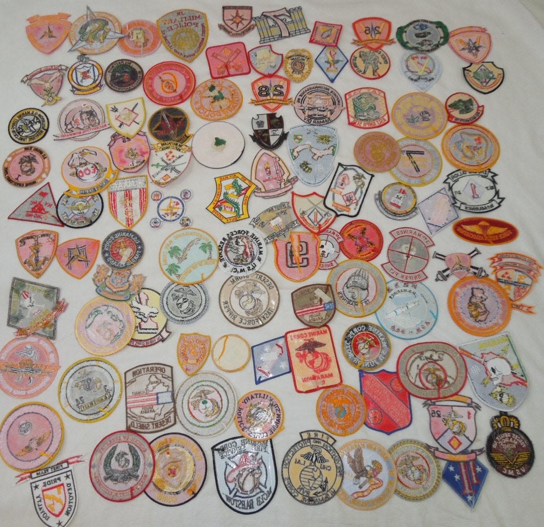 Lot of various US Marine Corps Patches, mostly 1970s to 2000s era. Some are custom made, and others are more of a novelty type.