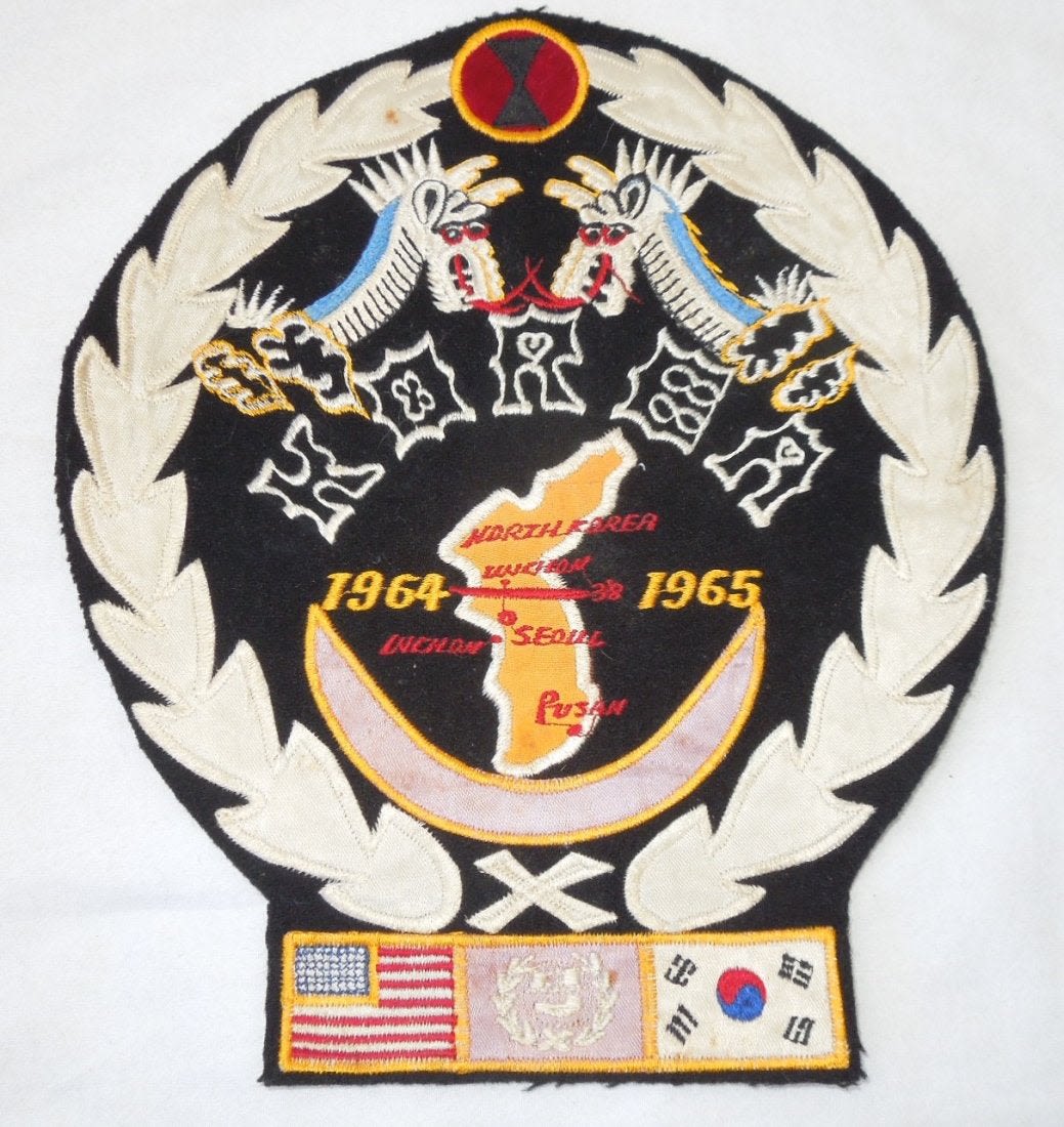 9" x 10 1/2" sized 1965 Korea 7th Infantry Division theater made jacket patch.