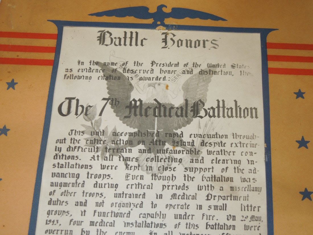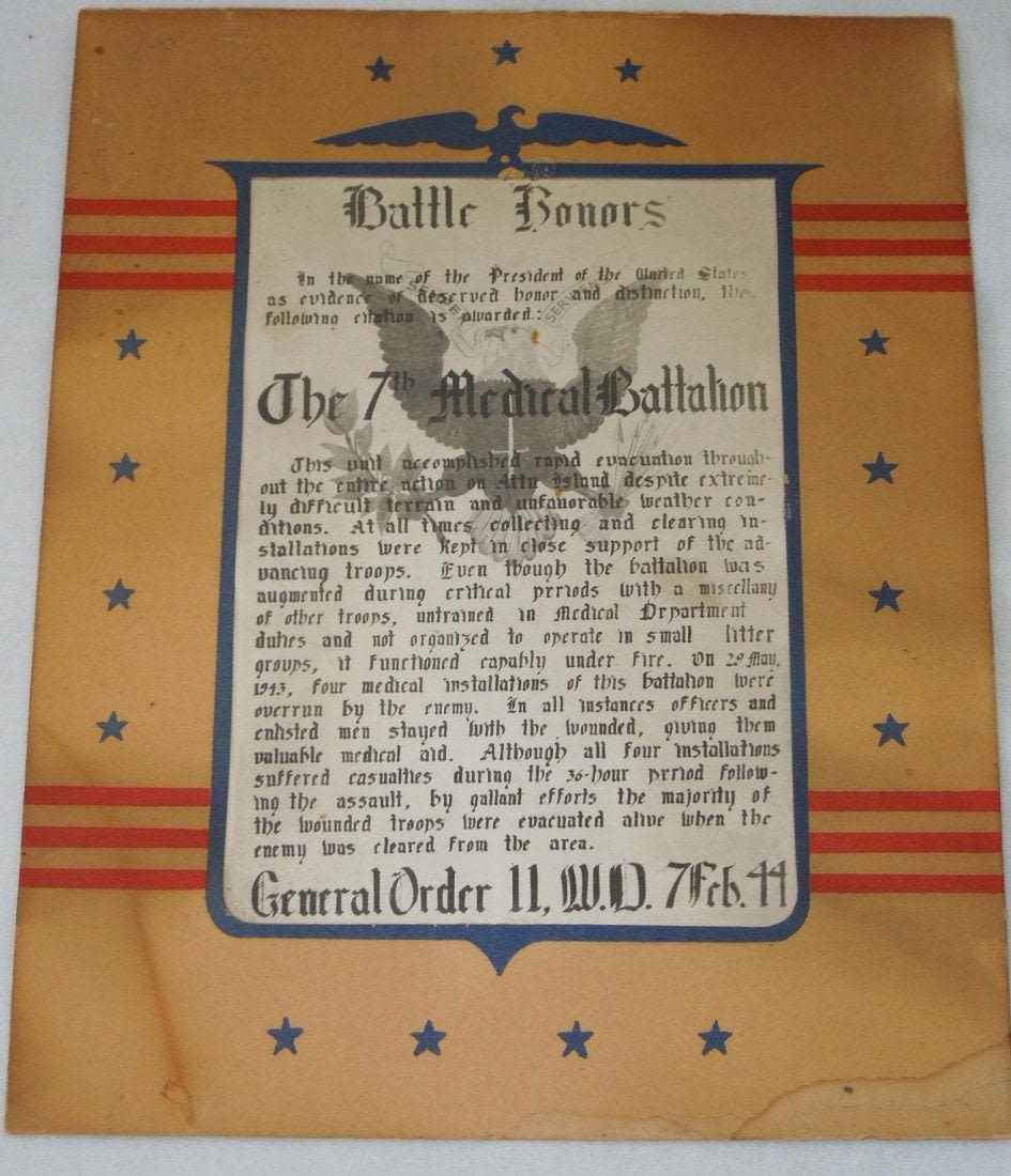 WWII Battle of Attu 7th Medical Bn. Award Certificate