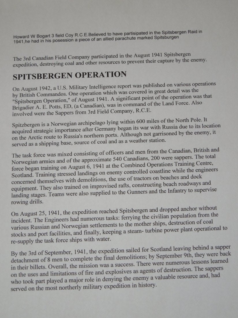 WWII Canadian Forces Soldier Ottawa Certificate. Certificate of Honour named to Howard W. Bogart. Bogart is believed to have participated in the Spitsbergen Raid in 1941 during WWII. He had in his possession a piece of a parachute marked Spitsbergen. This information comes from the paper that came with this certificate. NOTE: There is no parachute that comes with this certificate. Dated 1947. Size is 8.5 x 11 inches.