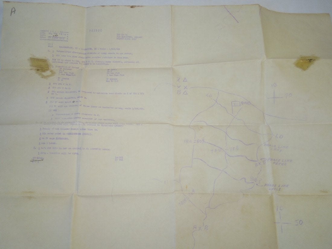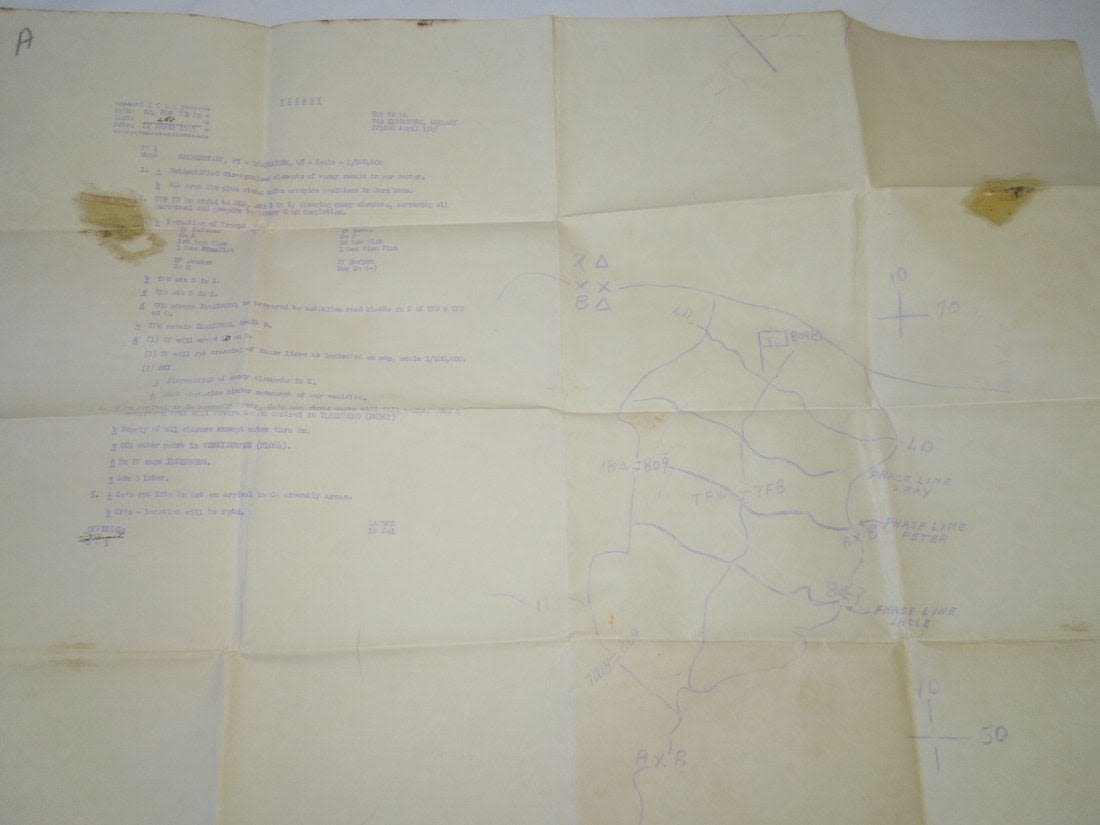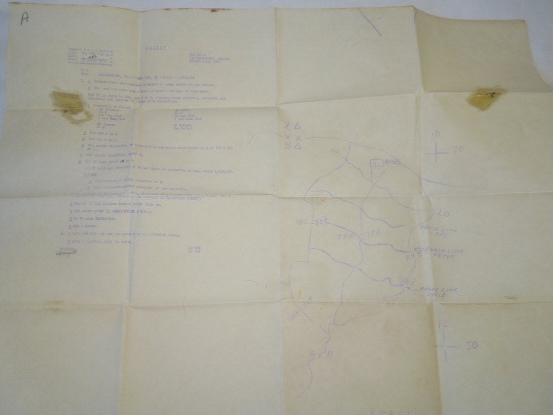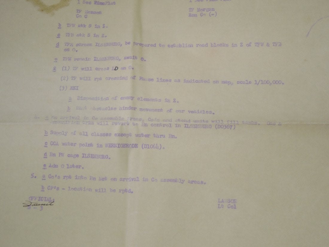 WWII 809th Tank Destroyer Battalion Orders Map. Official initialed and signed secret map. Vic ILSENBURG, GERMANY. 22 April 1945 dated map. Approximate size is 18 x 61 inches.