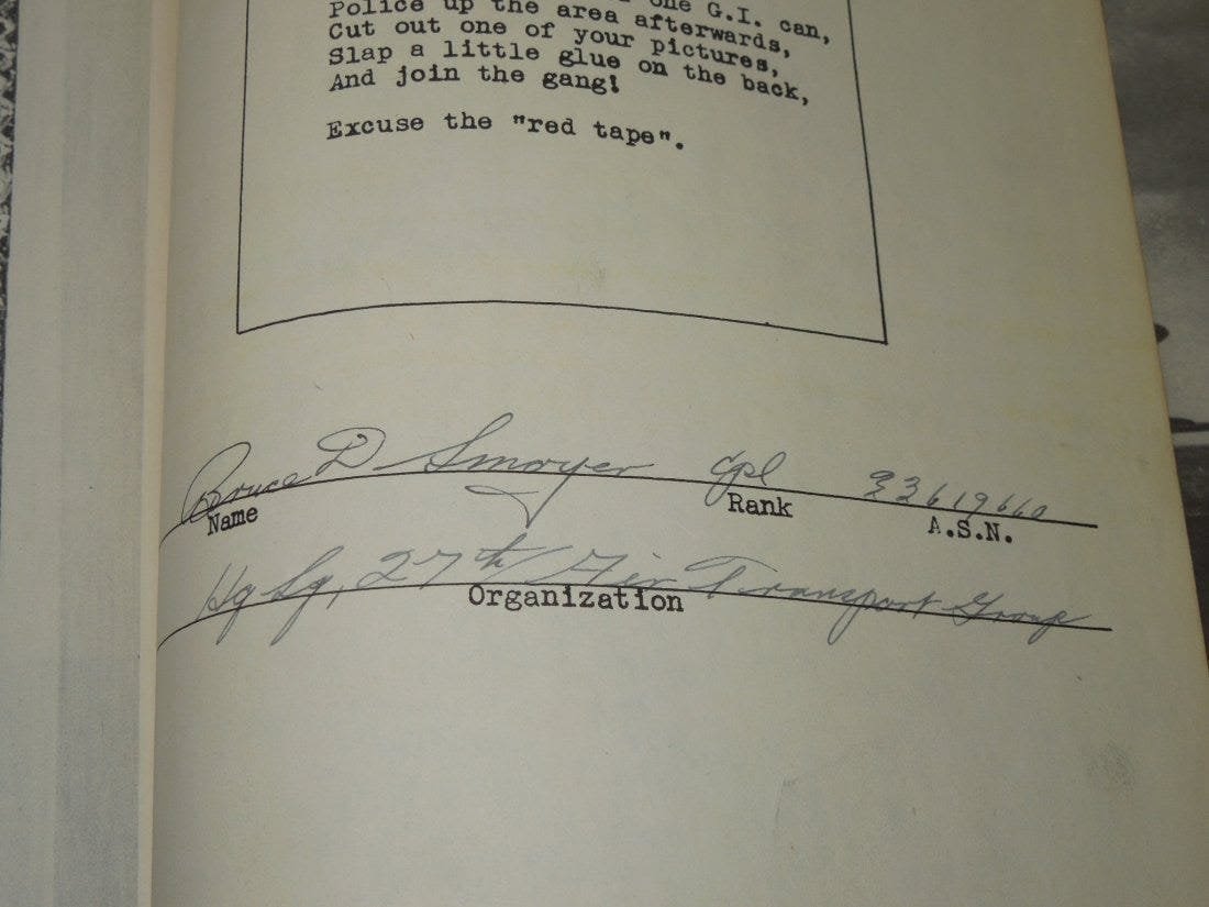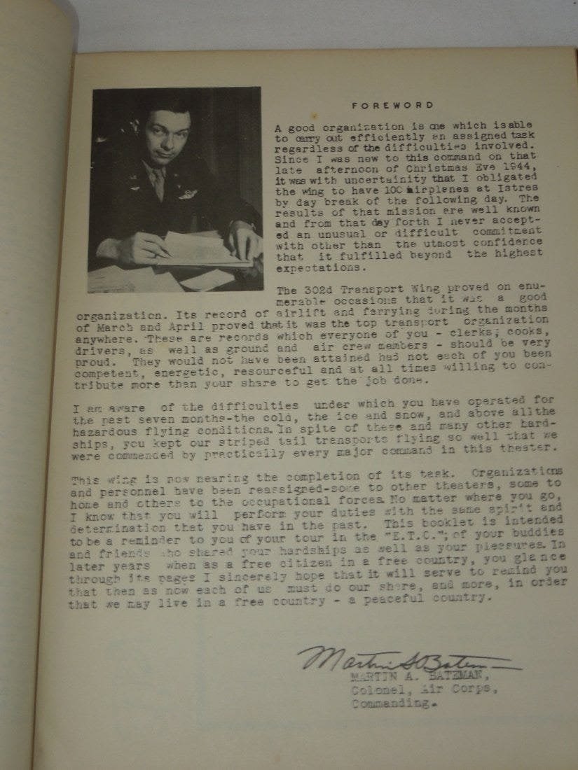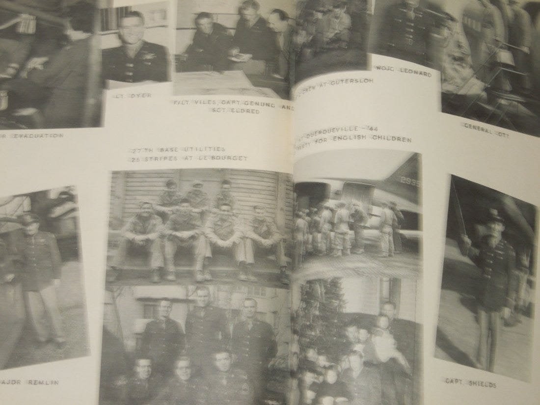 Scarcely seen original WWII book as shown, with many pages of activities in the European Theater of Operations during the War. Nice photos, and named to an Airman in the back.