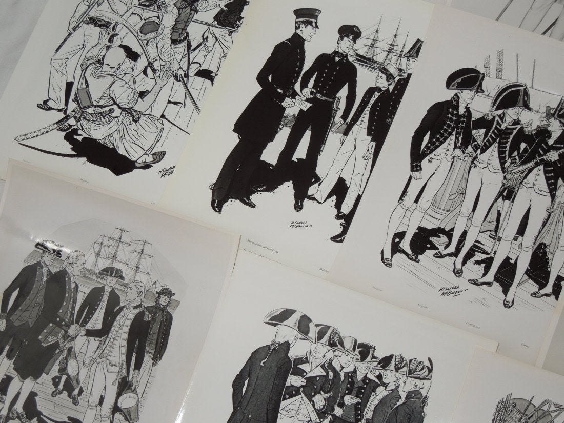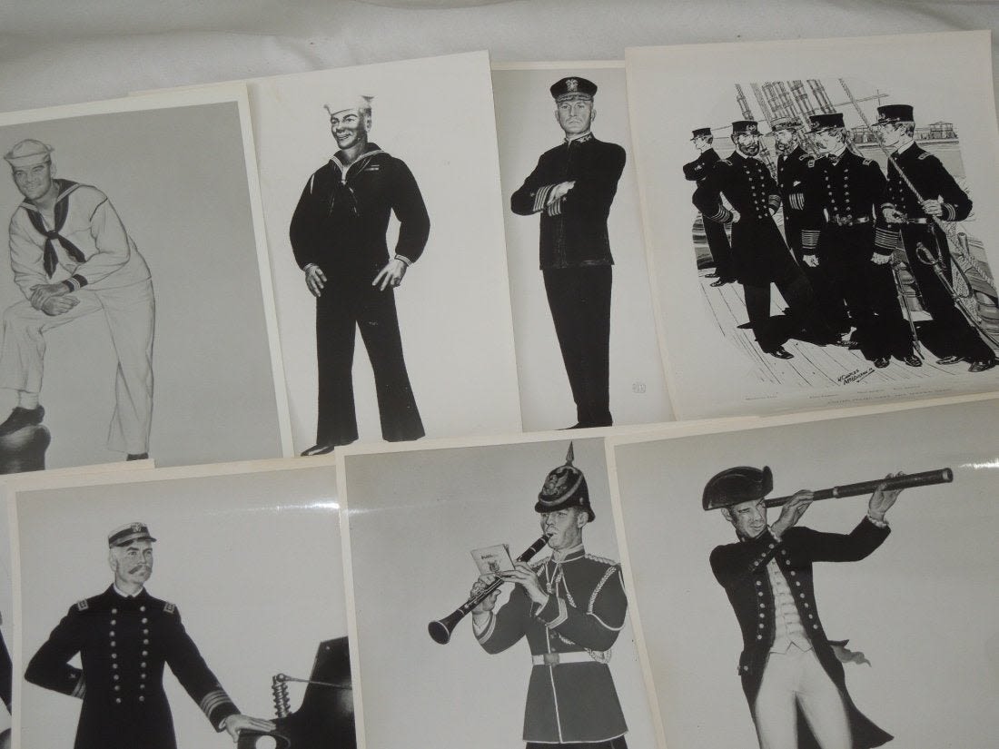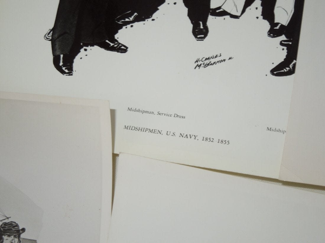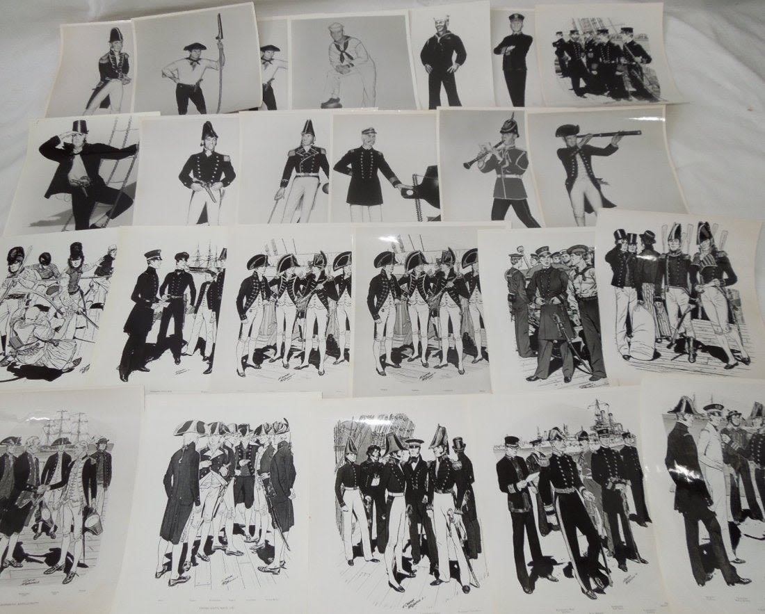 Official USN Navy Naval Uniform Photos Lot of 24. Some of the descriptions include the following: 1776-1777 Continental Navy Uniforms, 1790 – 1810 Captain Beveridge Officer Sailor Military, Seaman McKewan, Chalk Stonepipe Hat, Sailing Master- Scafro, 1797 Navy Uniforms, 1810-1830 Master Mel Howard, Captain Frank Whittaker, 1802 Full Dress Uniforms, 1812-1815 Dress Uniforms of Naval Offices and Seaman, 1815 Boarding Party Naval War with Algiers, 1830-1841 Uniforms, 1852 Navy Uniforms, 1852-1855 Uniforms of a Midshipman, 1862-1863 Service Dress Uniforms, 1880-1900 Captain Don Brenon, Bandsman Paul Butler, 1898 Navy Uniforms, 1900-1920 Sailor Dick Bemusey, 1920-1945 Seamans. Size: 8 x 10 inches. Most photos have the actual government issued description. Some photos have the ‘Official U.S. Navy Photograph’.