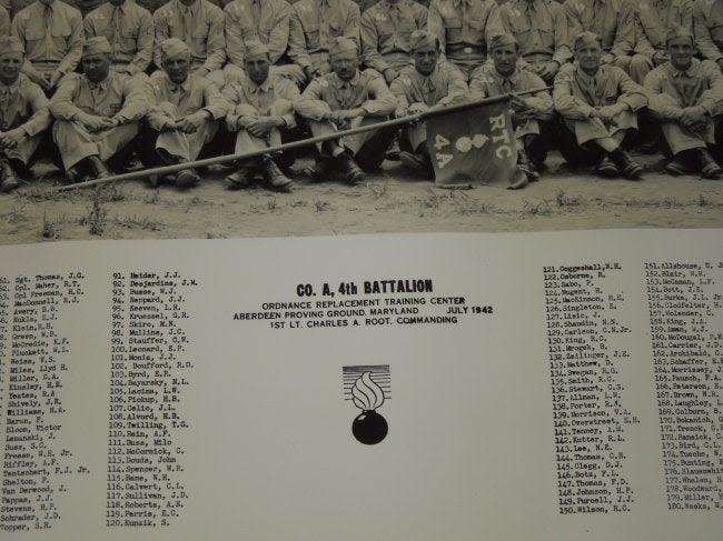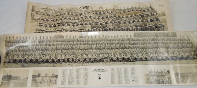 WWII US Quartermaster & Ordnance Rolled Unit Photo Lot. CO. A, 4th Battalion Ordnance Replacement Training Center, Aberdeen Proving Ground, Maryland, July 1942 (nice condition) and 467th K Quartermaster (Wear from age and use). Sizes: 8 x 28 inches and 10 x 36 inches