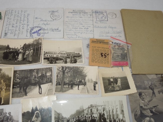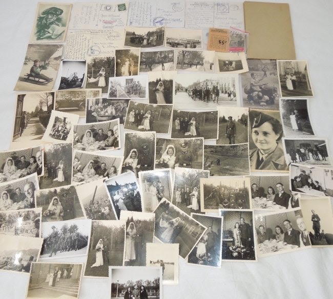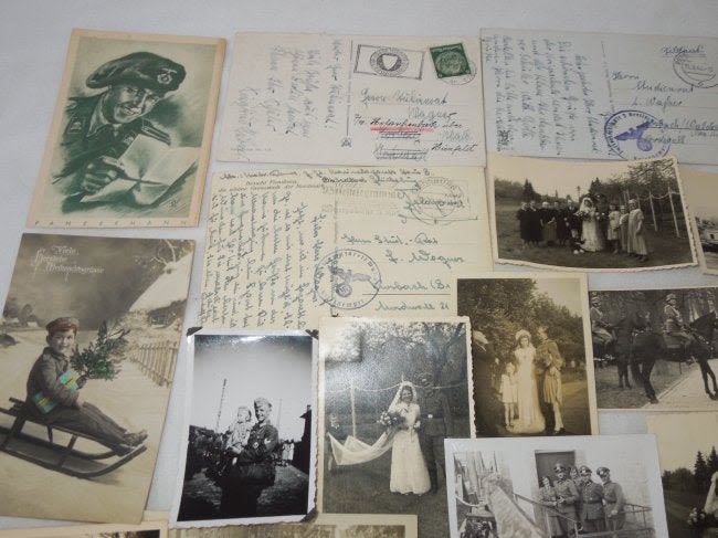 WWII Lot German Wehrmacht Army Photographs in Uniform. Lot of numerous postcards and photos of German military members Circa WWII. Many have captions, display uniforms, weddings, scenes, etc. Size varies.