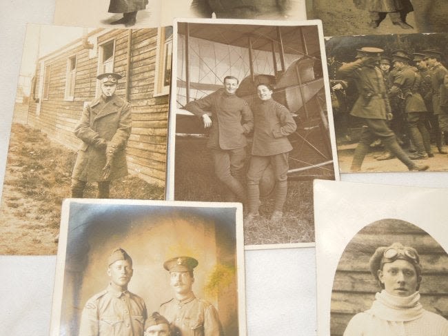 WWI Era British Royal Flying Corps RFC Real Picture Post Card RPPC Photos Lot. You will receive 12 RPPC and photos. Some photos and post cards have information on their reverses. See pictures for complete details. Some nice wing and aviation equipment photos here.