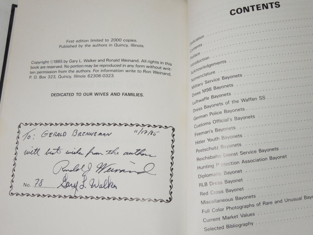 German Clamshells and Other Bayonets: A Collectors Guide, by Gary L. Walker and R.J. Weinand, 158 pages B&W, hardcover, 1985, First Edition hand signed by both authors.