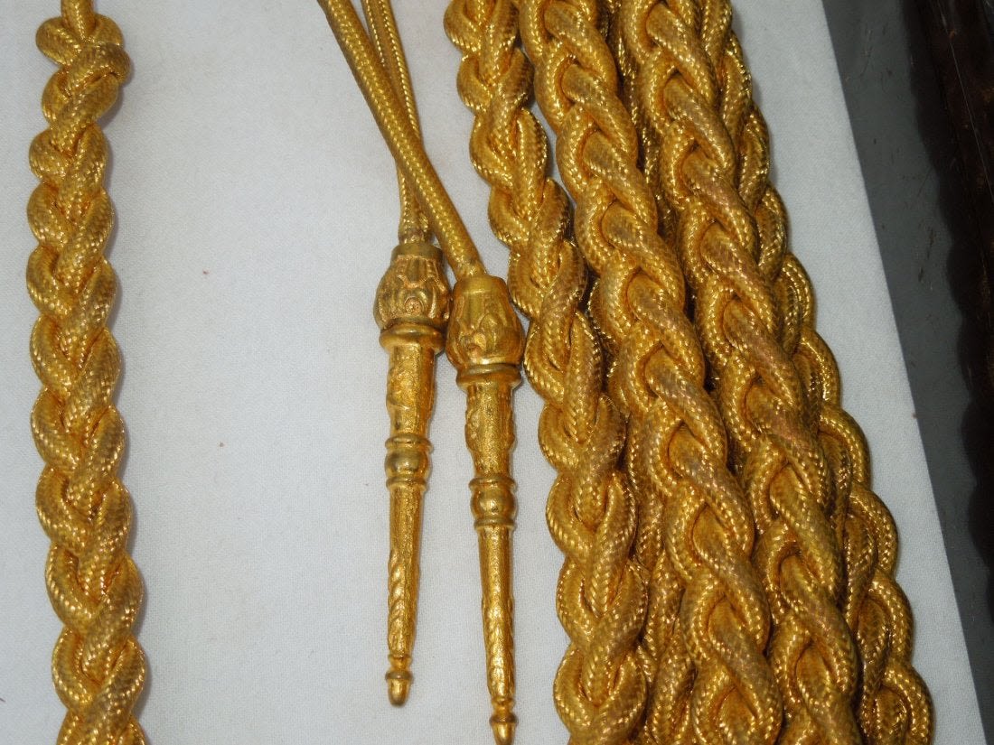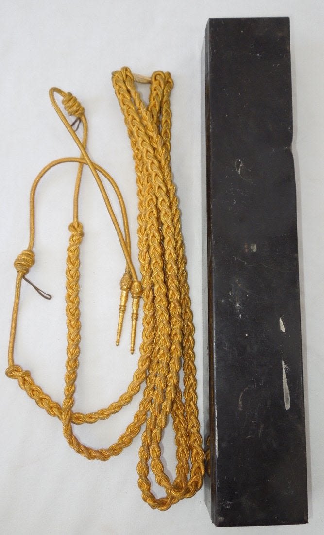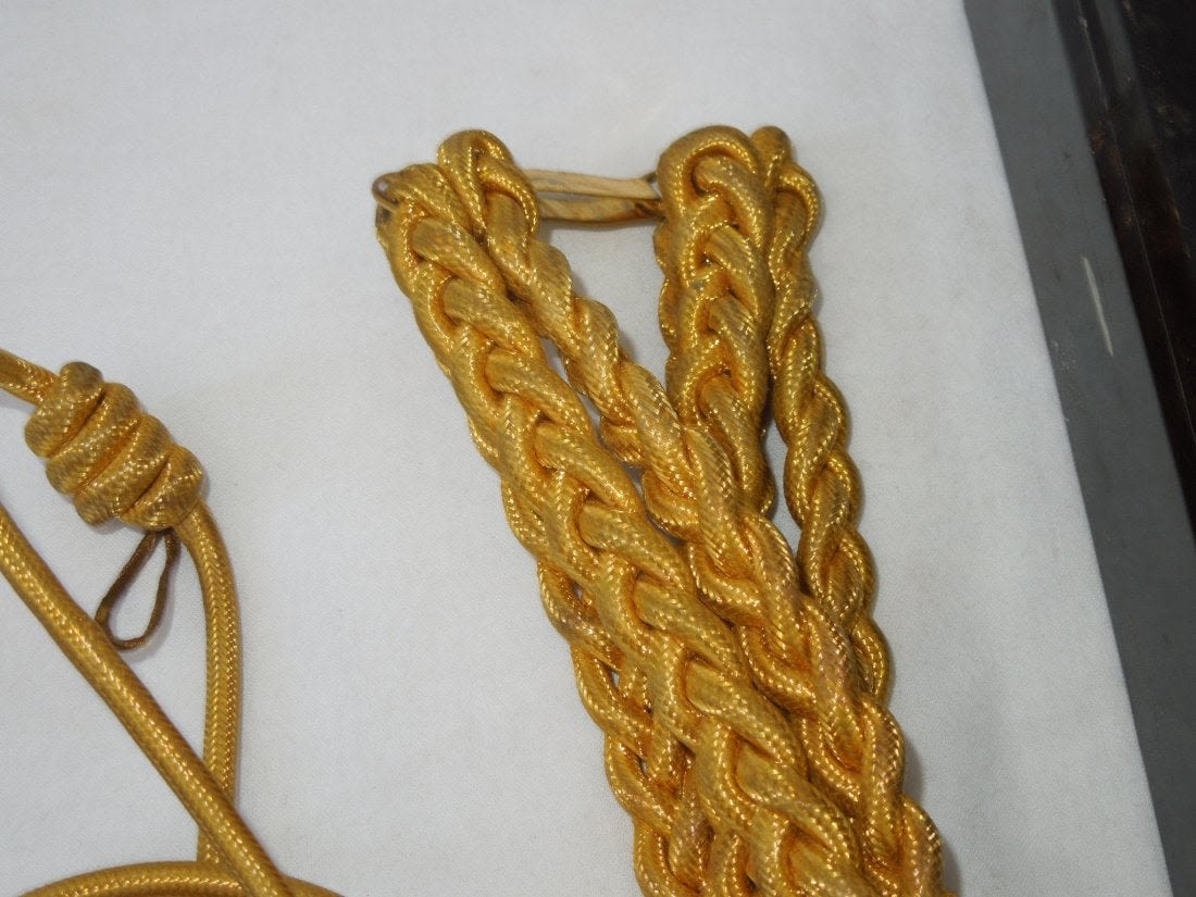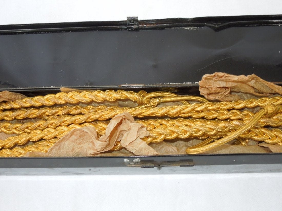 Original early 1900s Aide to a General Officer Aiguilette in its tin box.