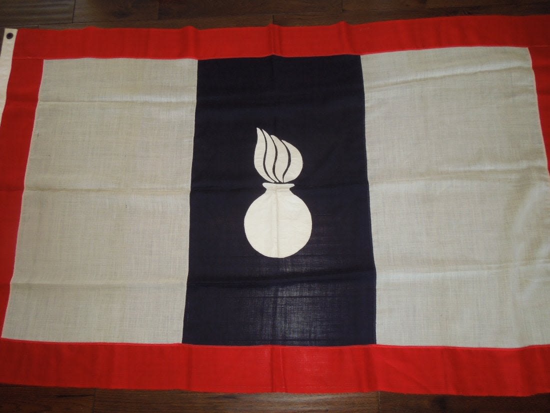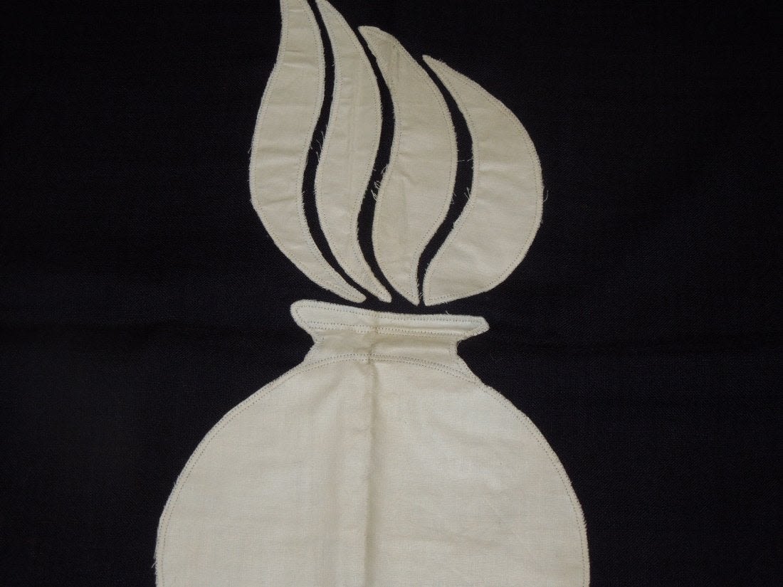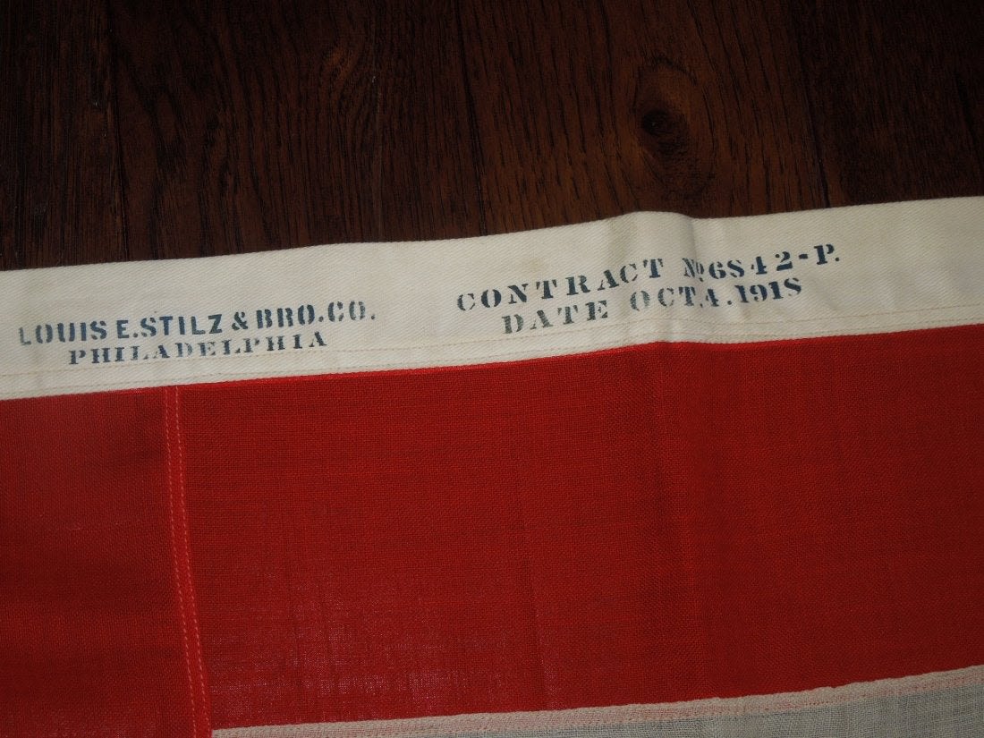 Original double sided, multi piece construction, 1918 dated large Chief of Ordnance flag from the estate of a Colonel who was stationed there from 1918-1922 (W.H. Tschappat, who later became the Chief of Ordnance himself in the 30s). Measures 6 1/2′ x 4′.