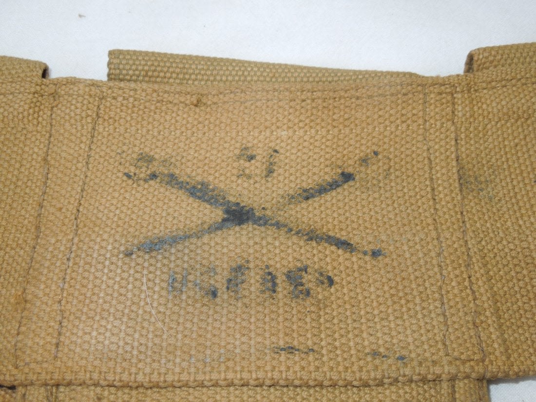 WWI US Army Mills Ammo Bandoleer Unit Marked. Canvas Khaki piece. Marked June 1917 Mills. The reverse is stamped with a unit mark. "309 Cav / Troop 3". See Photo. Excellent condition. (III A 1)