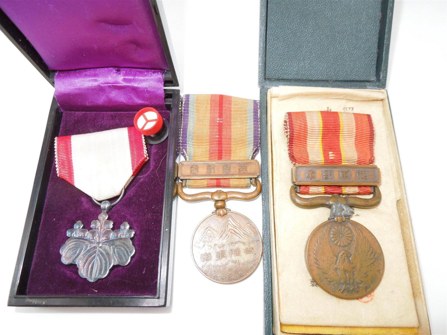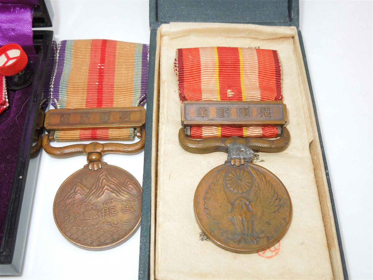 WWII China Incident Medals & Rising Sun Award Medals Lot of 3. You will receive the following boxed and loose medals: WWII 1937-1945 China Incident Medal (no box), 1931-34 China Incident War Medal with original paper wrapper, and Order of the Rising Sun Award Medal with rosette lapel pin. Good condition for their ages.