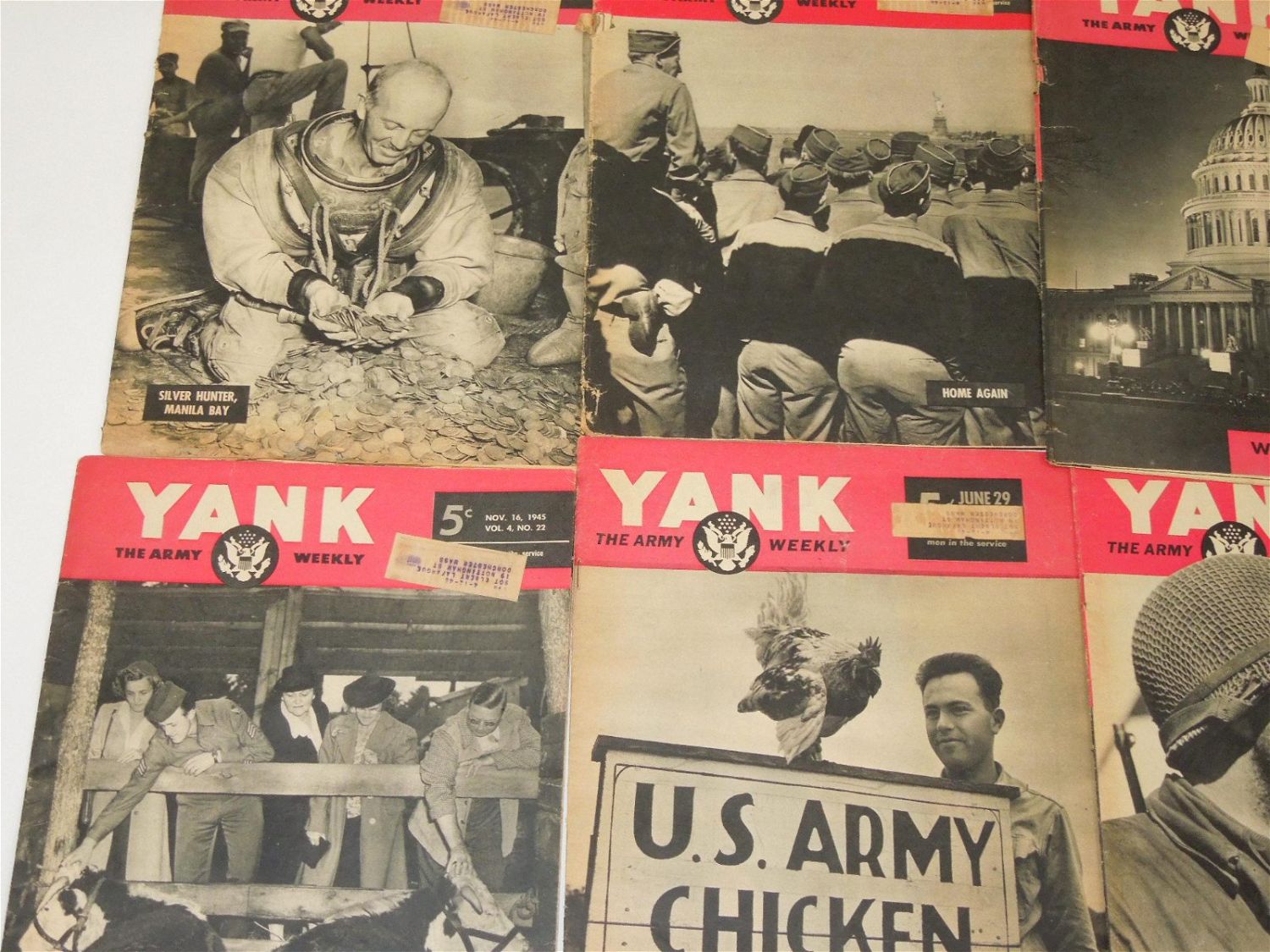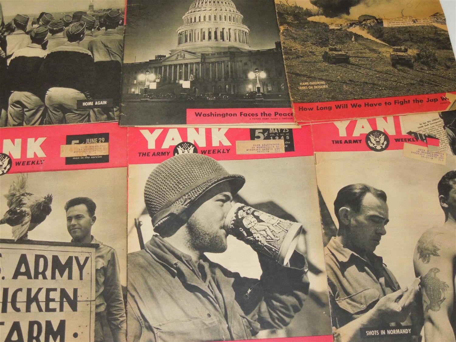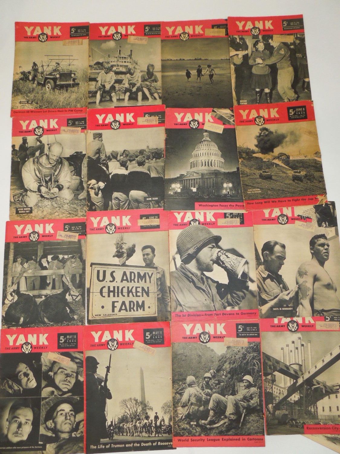 Lot of 18 WWII YANK magazines from throughout the war and post-war era. Lots of good content within each magazine.