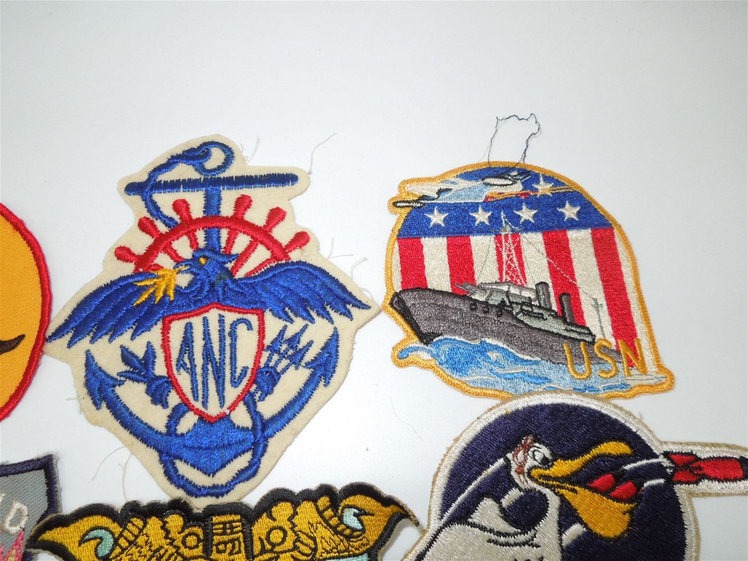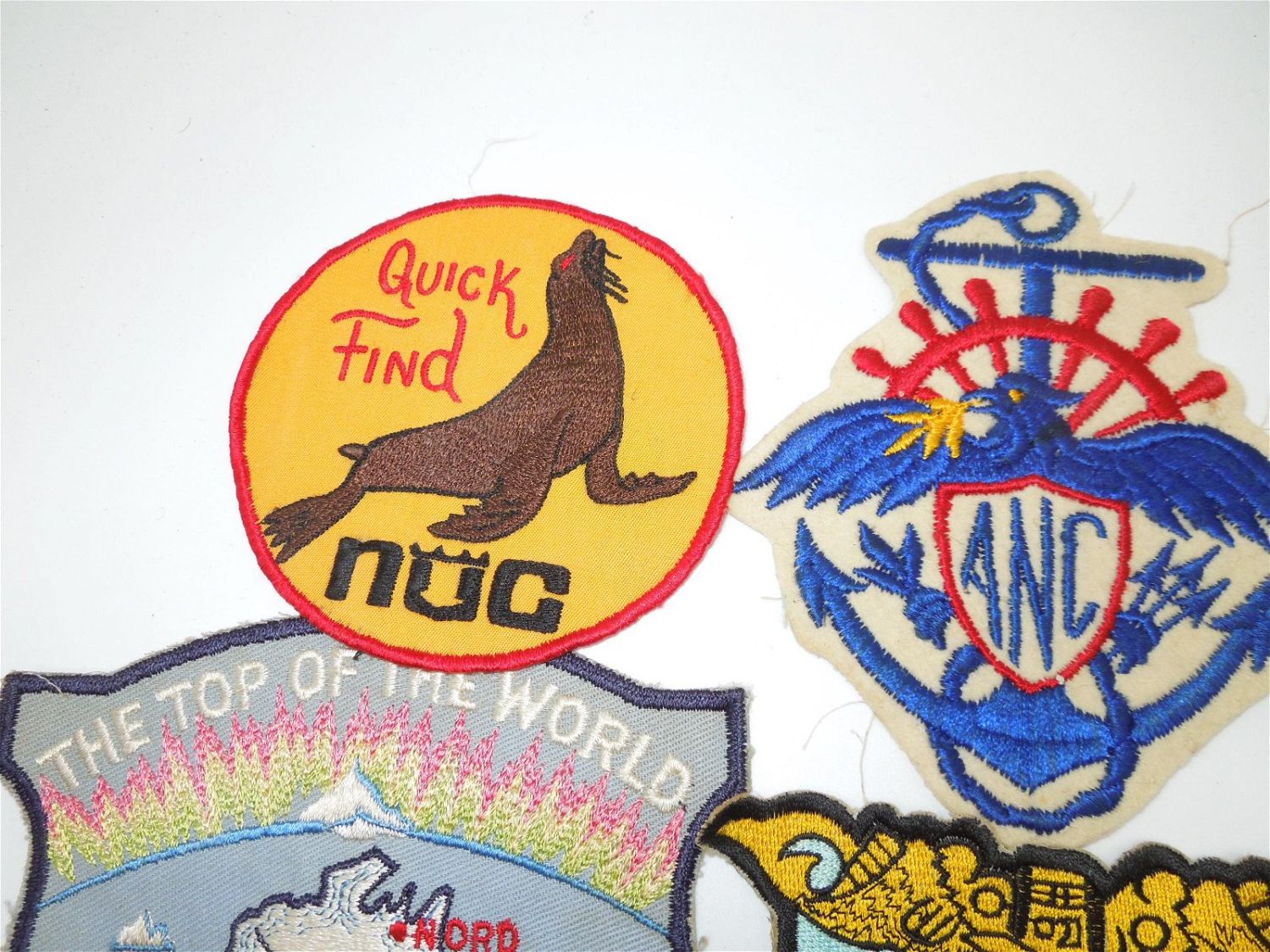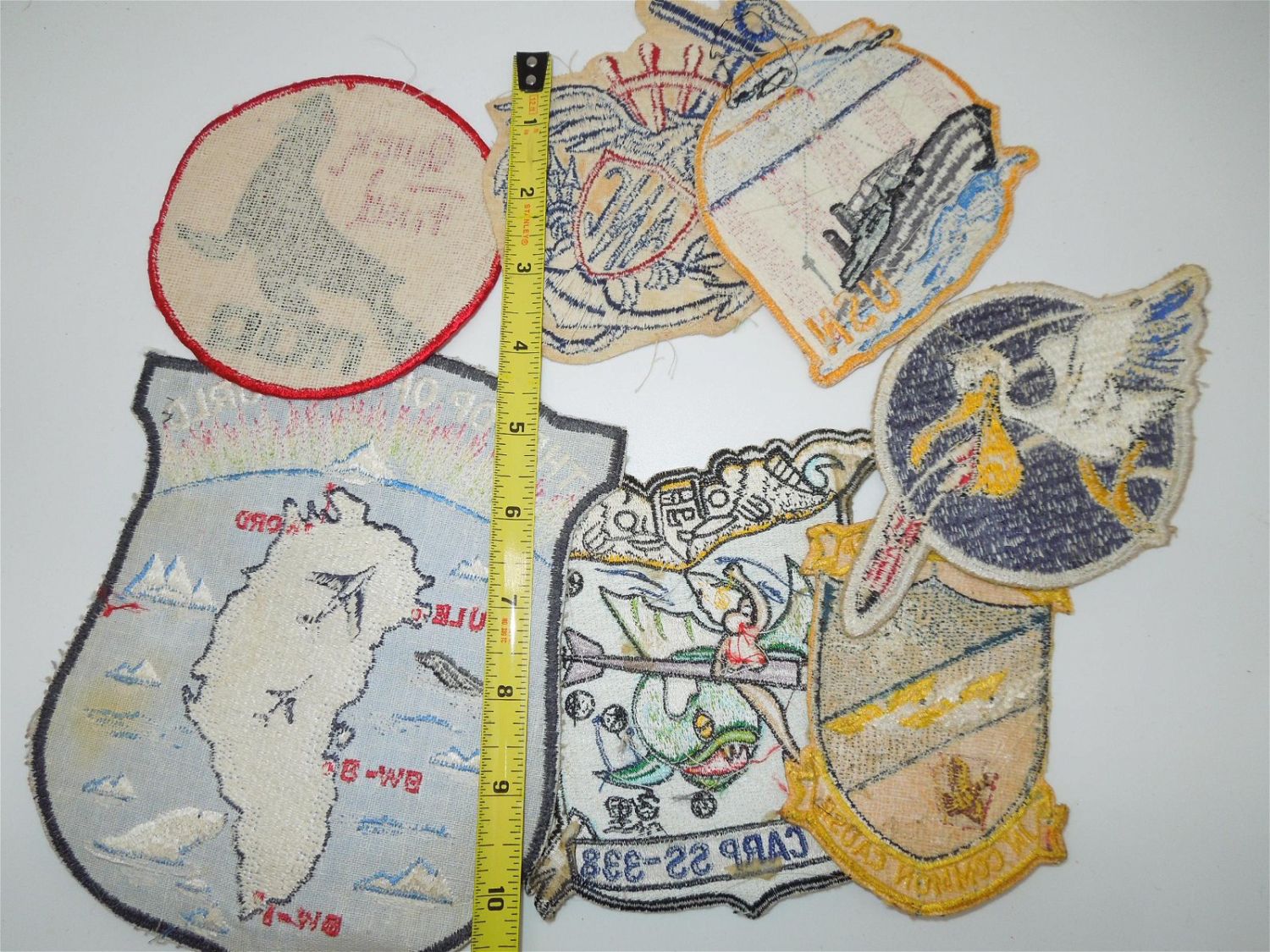Lot of 7 Vietnam era patches- Top of the World US Air Force patch, 112th TAC Fighter Group, USN PT Boat, USS Carp SS-338, ANC, Quick Find Nog and a Pelican one. Some of these appear to be custom or theater made. Good condition. Scale shown for size reference.