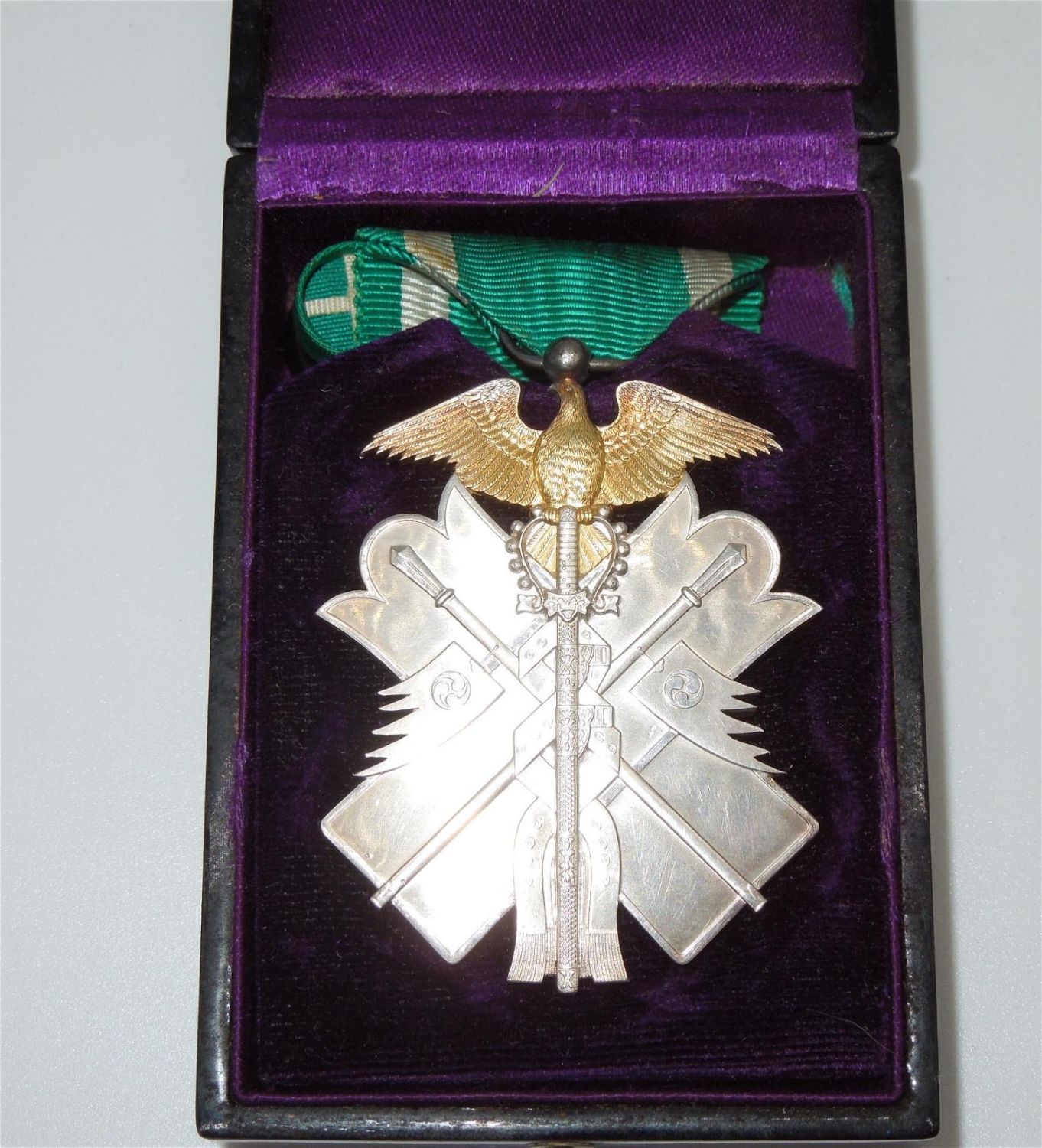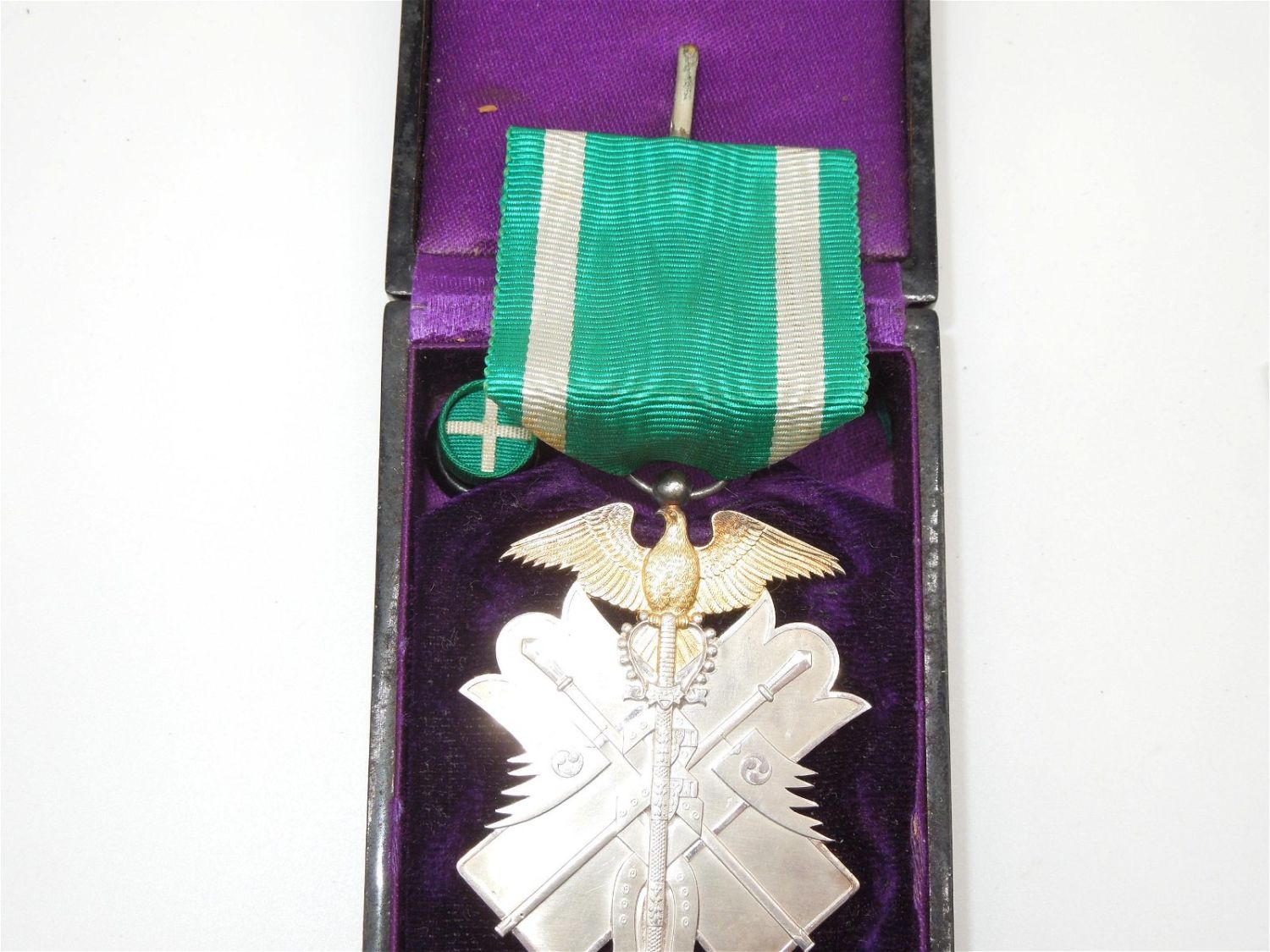 Japanese Order of the Golden Kite 6th Class Medal with Rosette & Case. The Order of the Golden Kite was an exclusively military award, conferred for bravery, leadership or command in battle. Nice condition for its age.